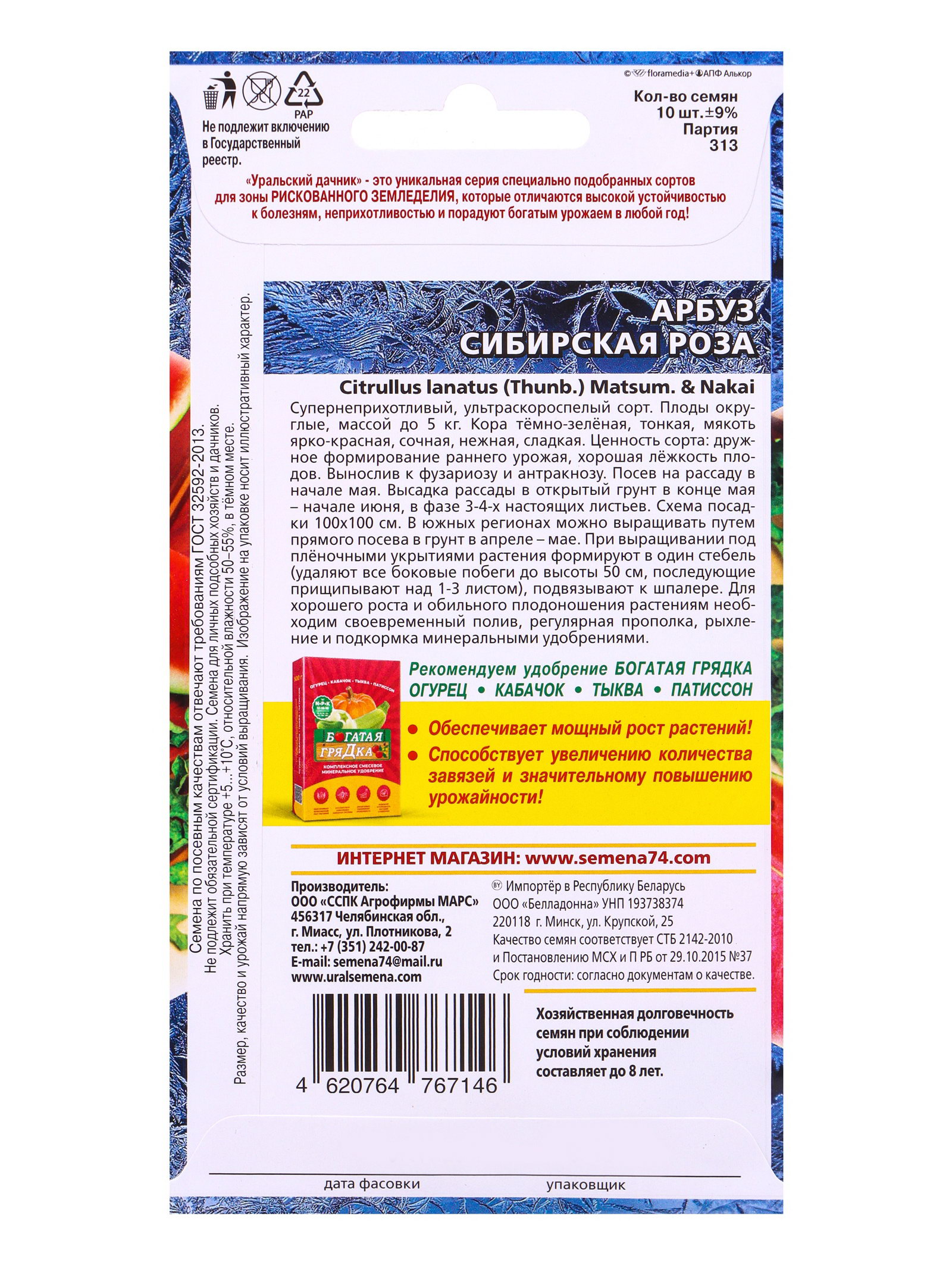 Семена Арбуз "Сибирская Роза", 10 шт., "Уральский дачник", Уральский Дачник, Россия