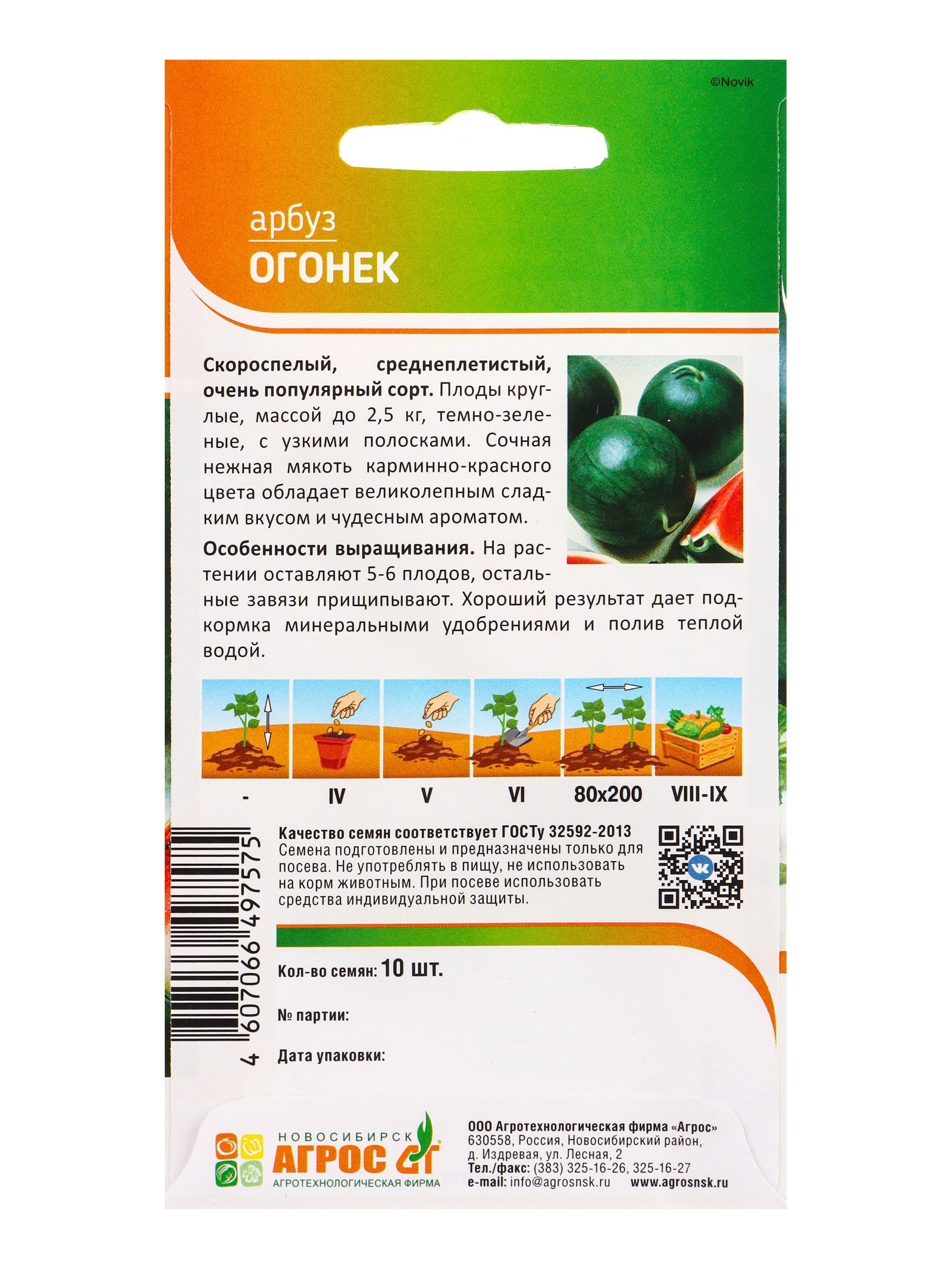 Семена Арбуз "Огонек" 10 шт, Агросс, Россия