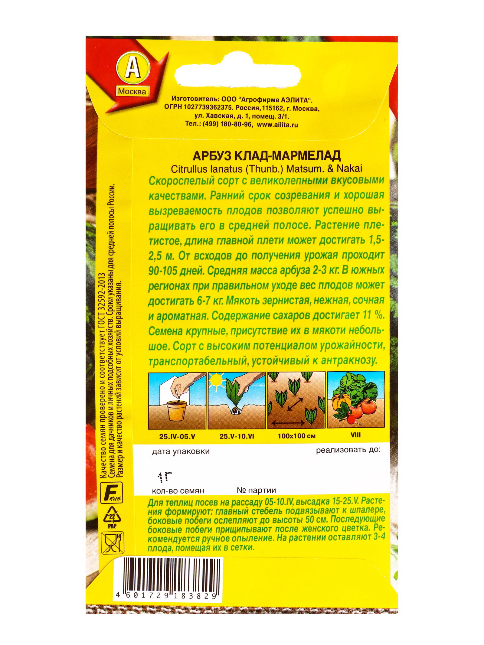 Семена Арбуз Клад-мармелад, Ц/П,1 г, Агрофирма АЭЛИТА, Россия