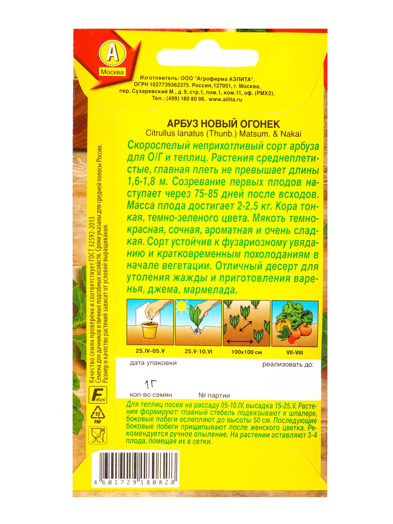 Семена Арбуз Новый огонек, Ц/П,1 г, Агрофирма АЭЛИТА, Россия