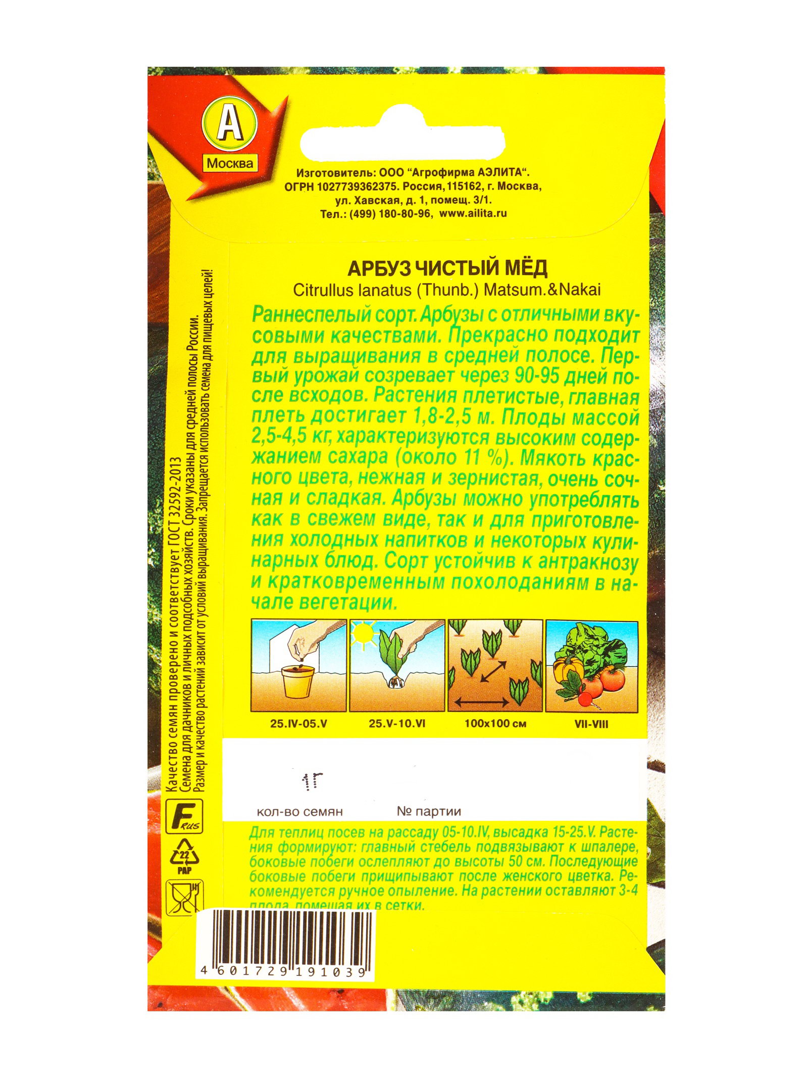 Семена Арбуз Чистый мёд, Ц/П,1 г, Агрофирма АЭЛИТА, Россия