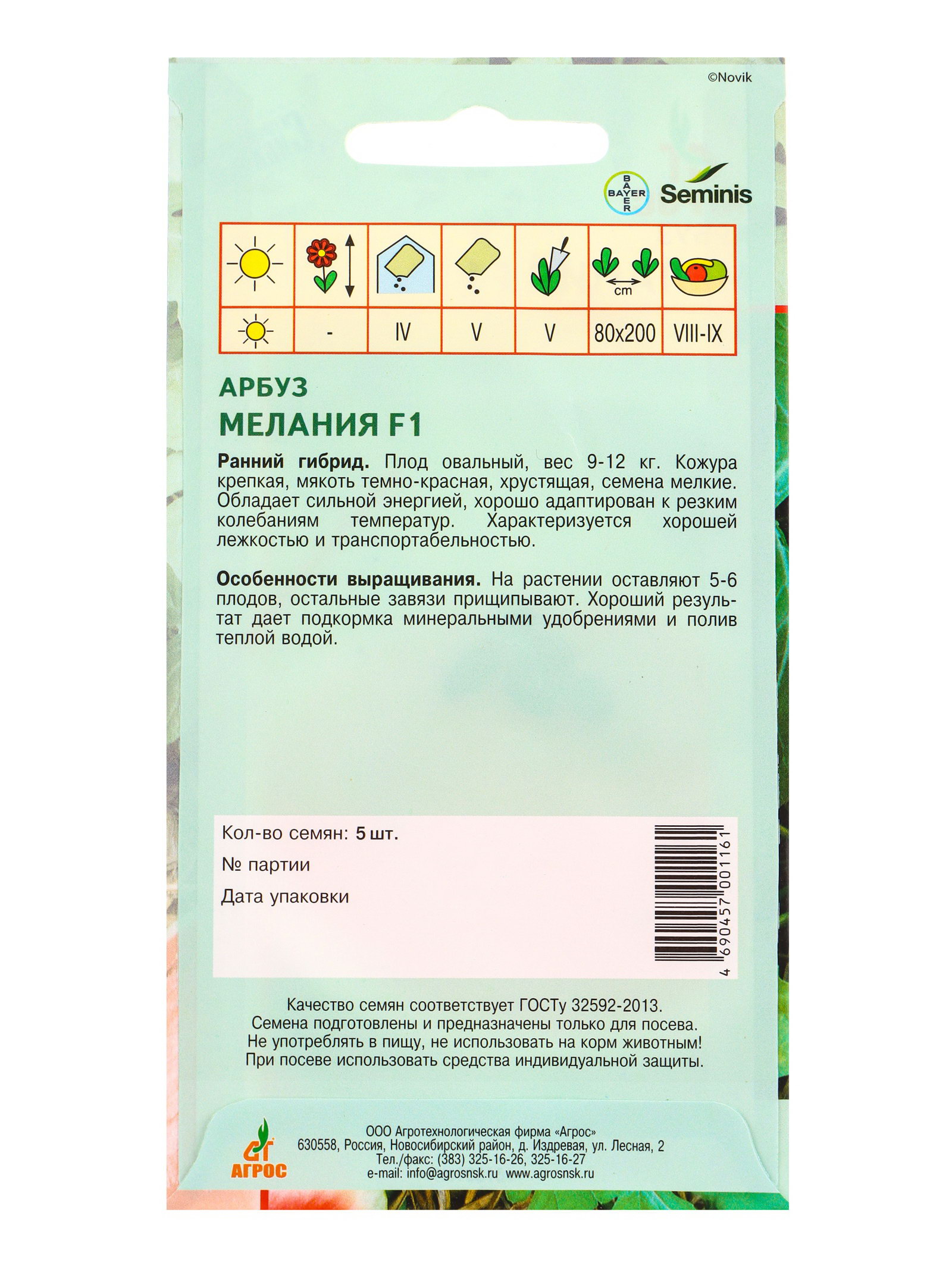 Дом Подарка › Каталог › Сад и огород › Семена › Семена ягод и фруктов › Арбуз › Семена Арбуз "Мелания", F1, 5 шт., "Агрос" профессиональная серия