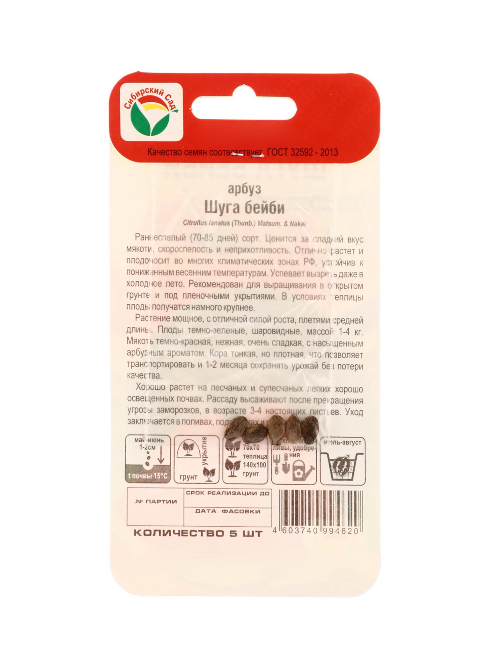 Семена Арбуз сахарный "Шуга Бейби", 5 шт., Сибирский сад, Россия