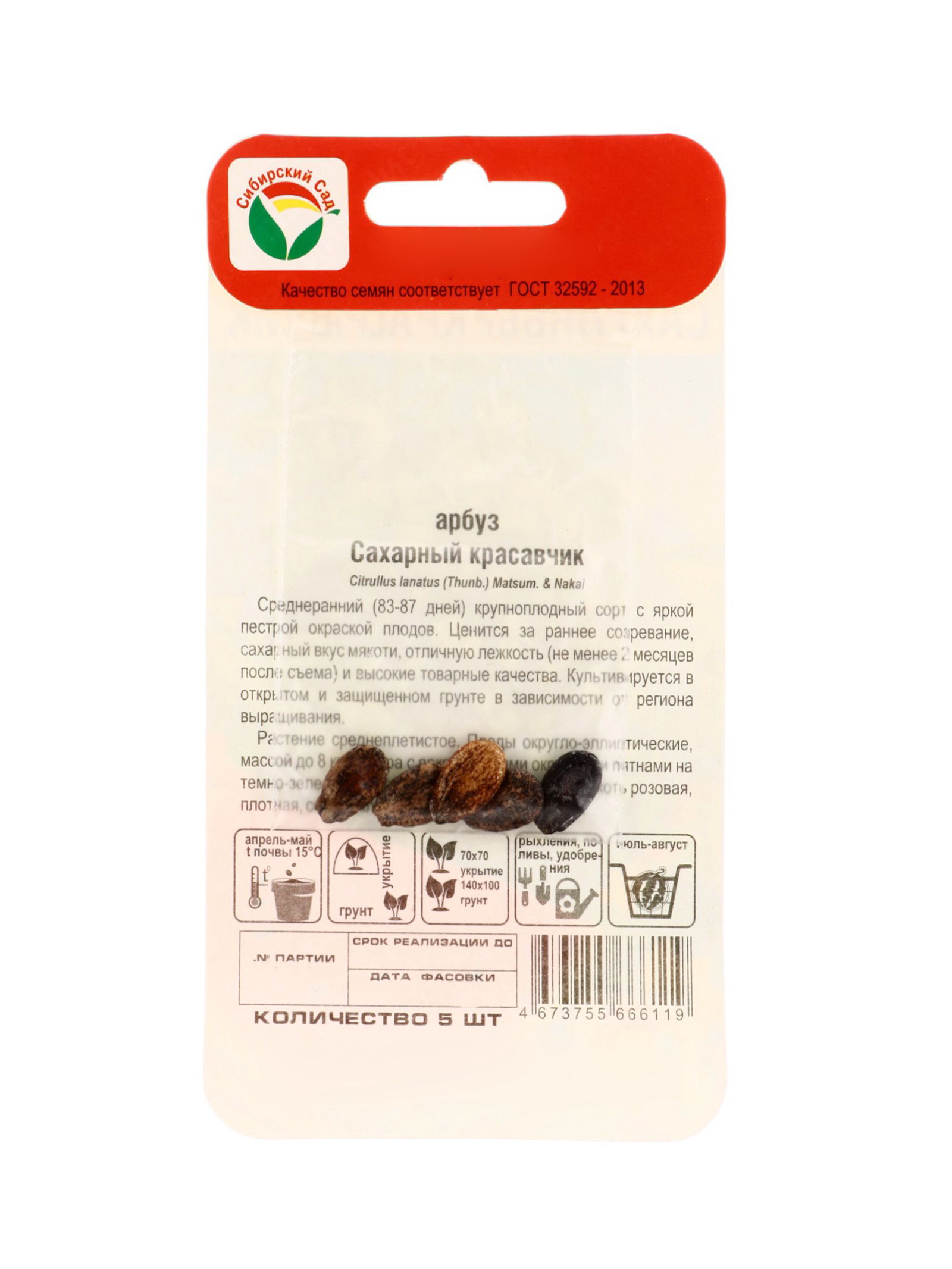 Семена Арбуз "Сахарный красавчик", 5 шт., Сибирский сад, Россия