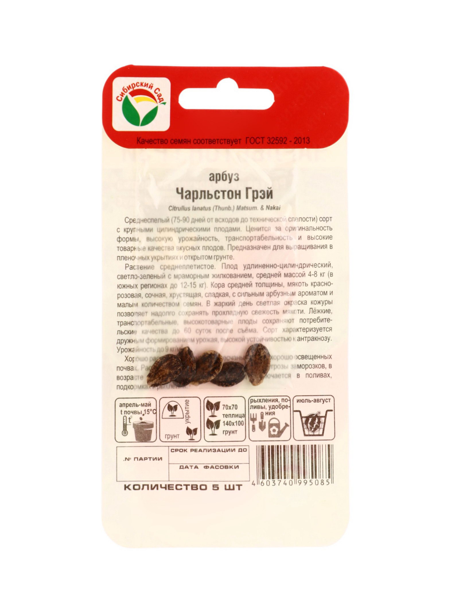 Семена Арбуз "Чарльстон Грей", 5 шт., Сибирский сад, Россия