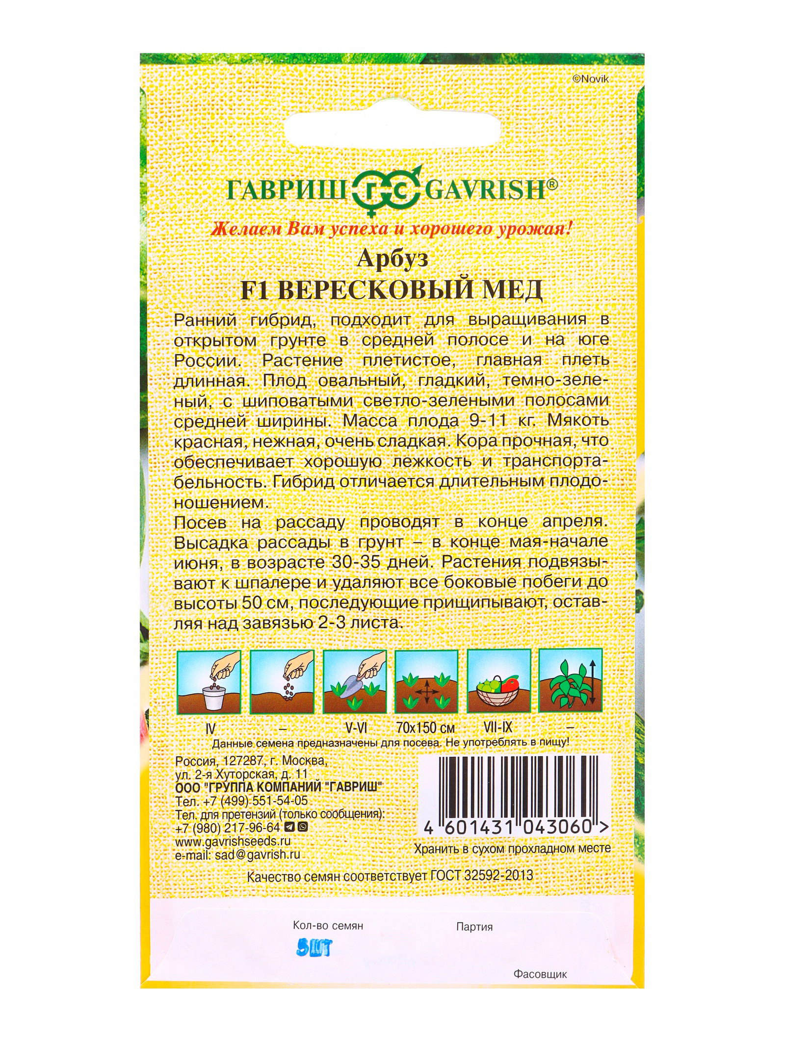 Семена Арбуз "Вересковый мёд", F1, 5 шт., Гавриш, Россия