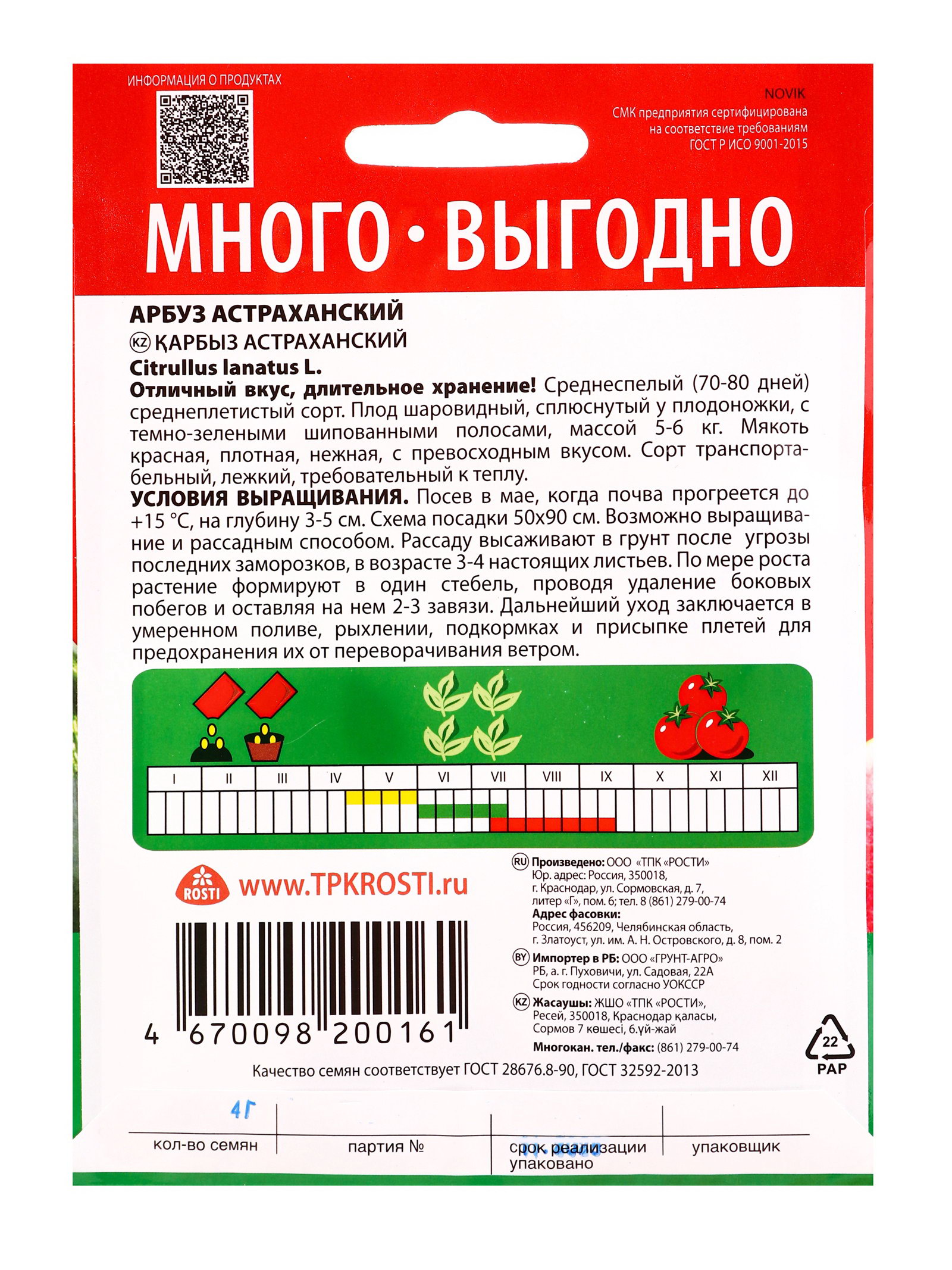 Семена Арбуз Астраханский Много-Выгодно 4г, Агроуспех, Россия