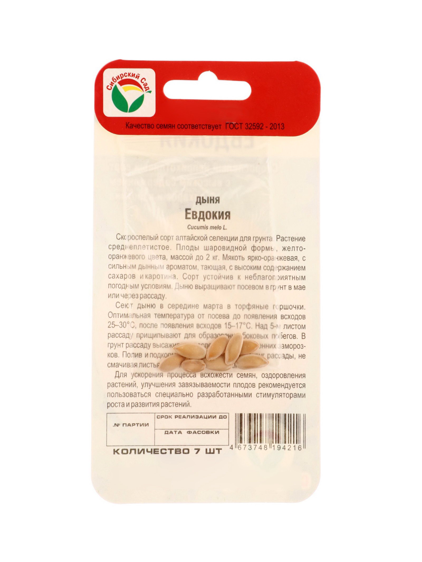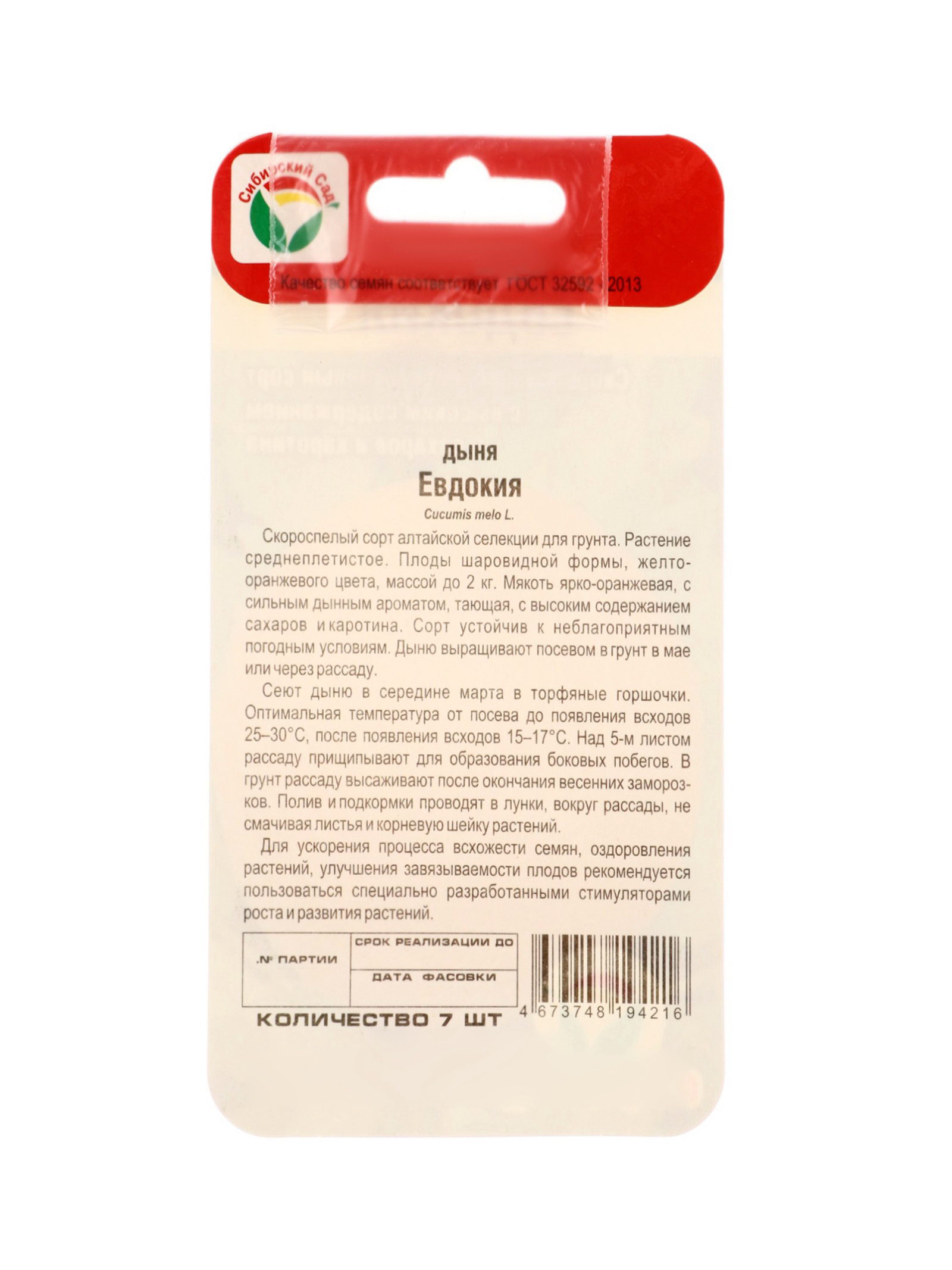 Семена Дыня "Евдокия", 7 шт., Сибирский сад, Россия