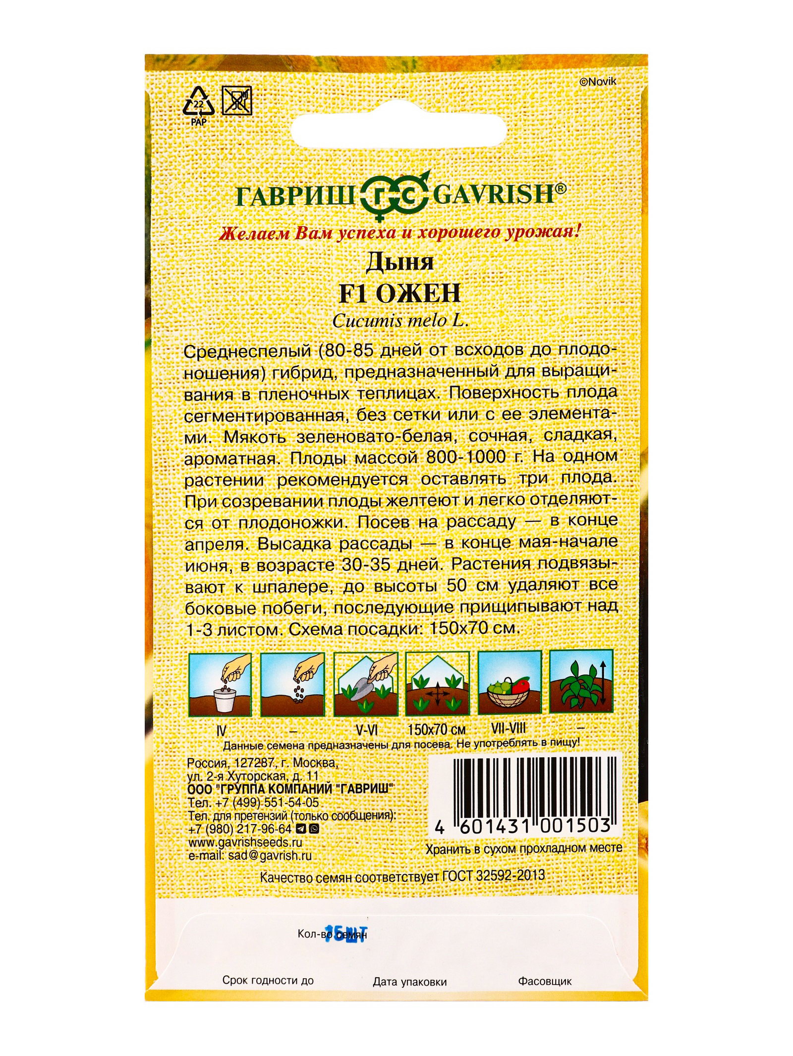 Семена Дыня "Ожен", F1, 15 шт., Гавриш, Россия