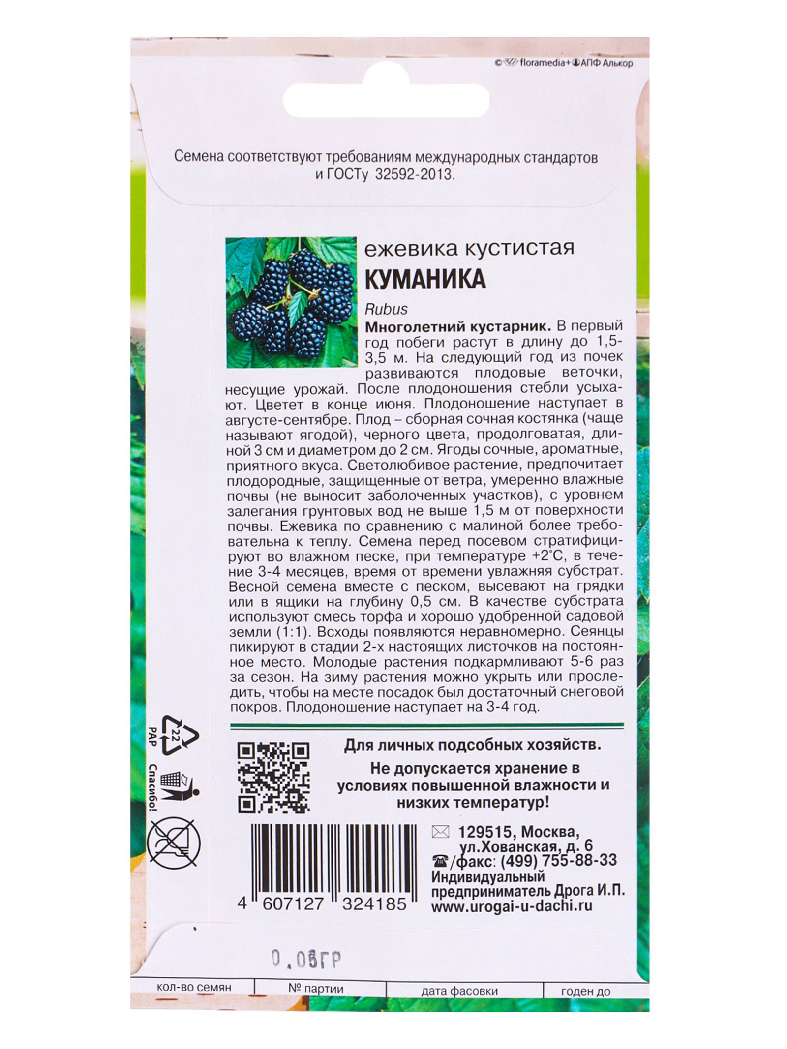 Семена Ежевика кустистая КУМАНИКА 0.05 гр, УРОЖАЙ УДАЧИ, Россия
