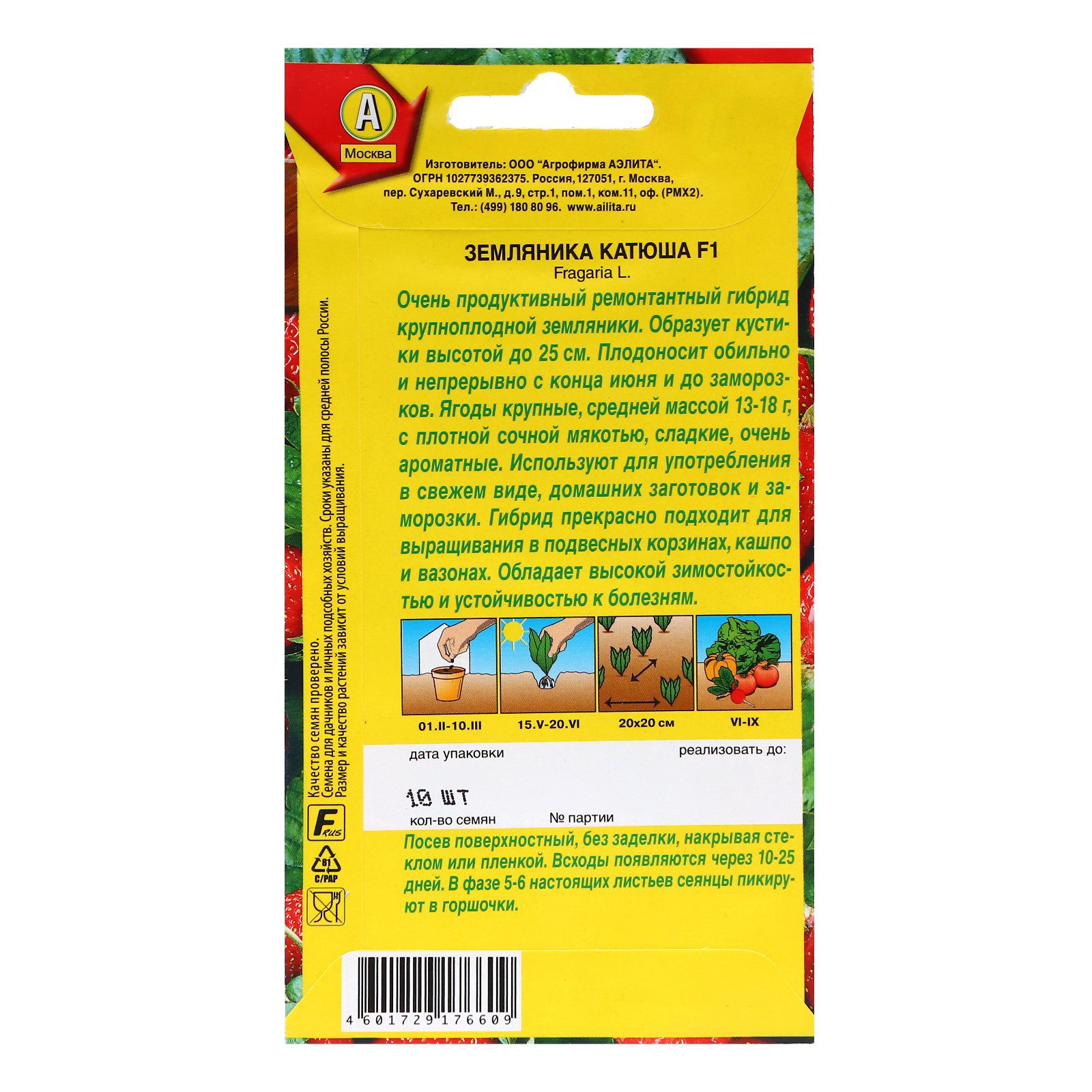 Семена Земляника "Катюша" F1, ц/п, 10 шт, Аэлита Агро, Россия