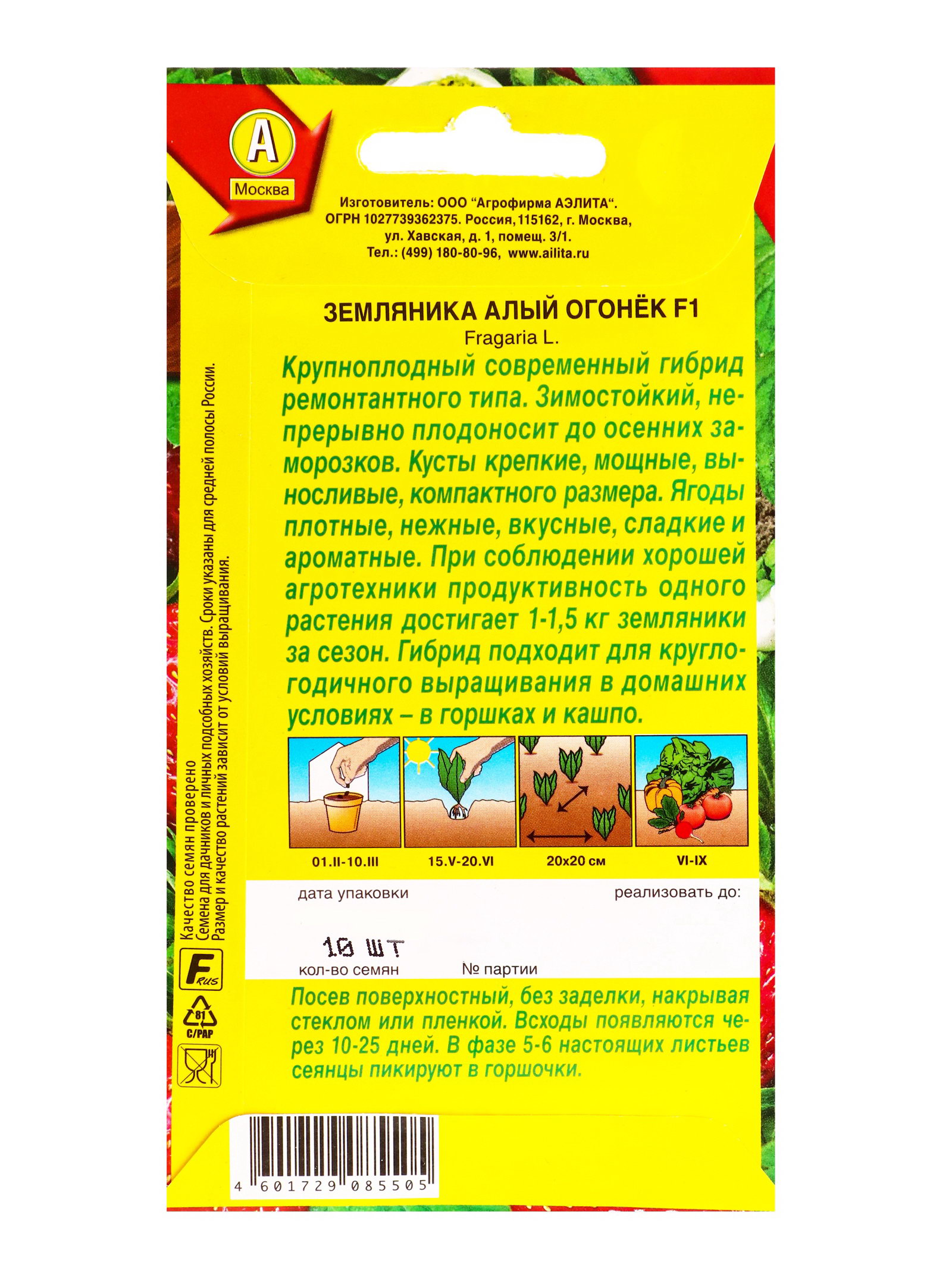 Семена Земляника ремонтантная крупноплая Алый огонек F1, Ц/П,10 шт., Агрофирма АЭЛИТА, Россия