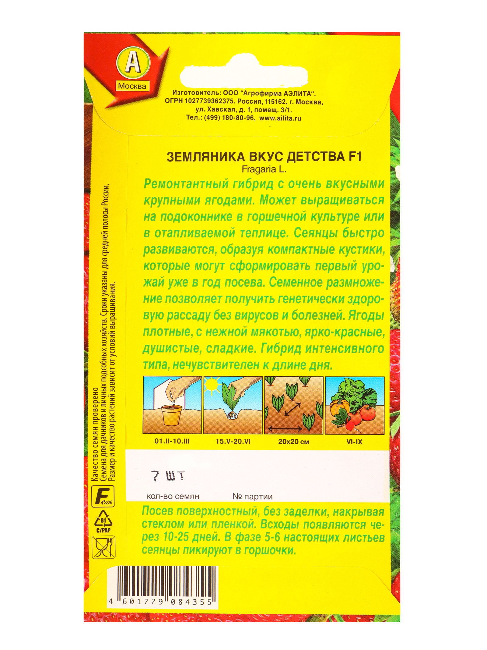 Семена Земляника ремонтантная крупноплая Вкус детства F1, Ц/П,7 шт., Агрофирма АЭЛИТА, Россия