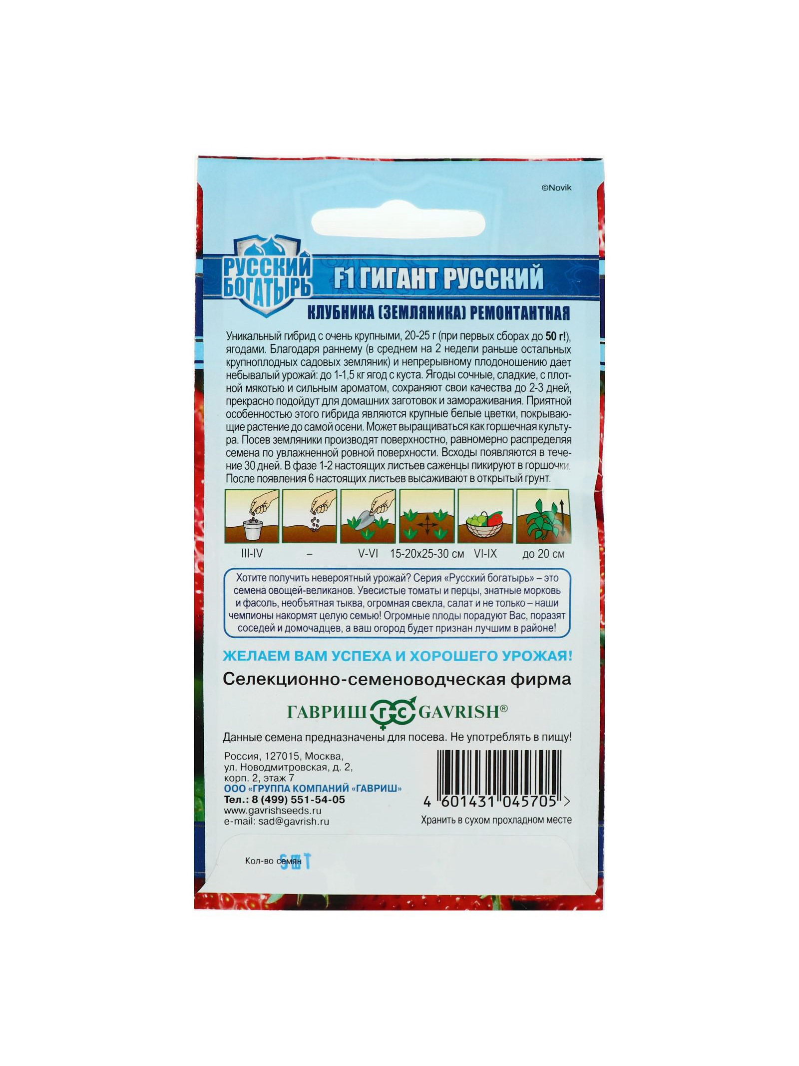 Набор семян Земляника "Гигант русский", F1, серия Русский богатырь, 3 шт., 9x17x1 см., Мой выбор, Россия