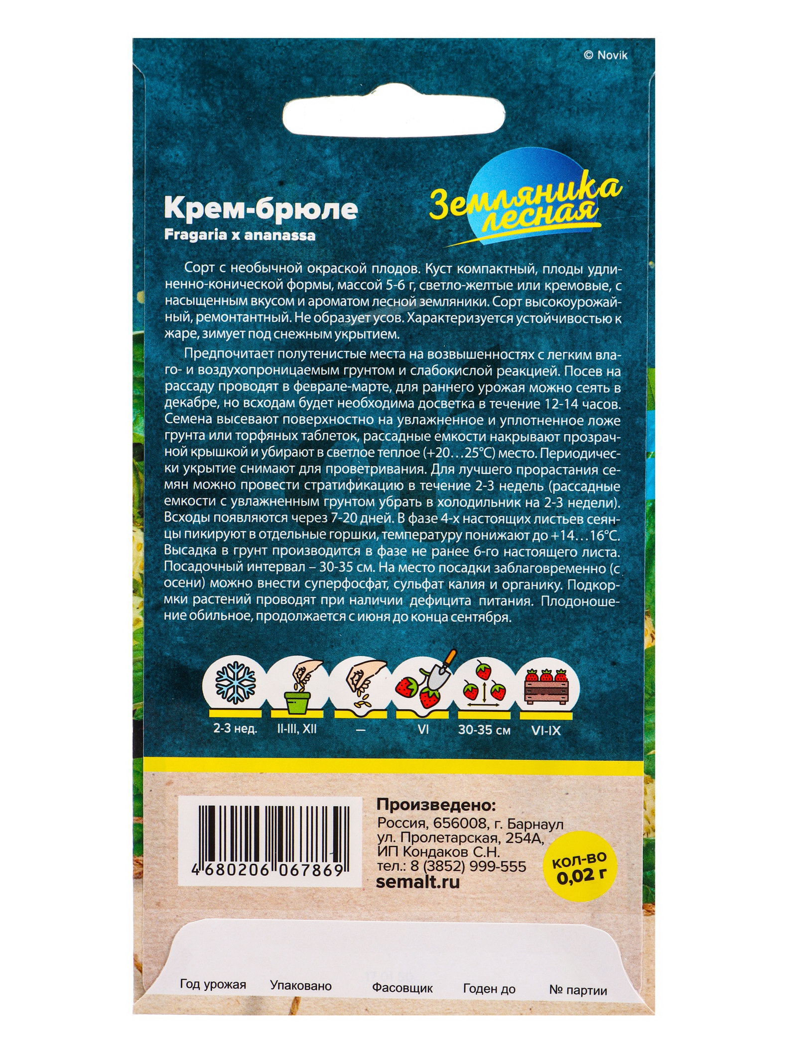 Семена Земляника Крем-брюле желтая ремонтантная/Сем Алт/цп 0.02 гр, Семена Алтая, Россия