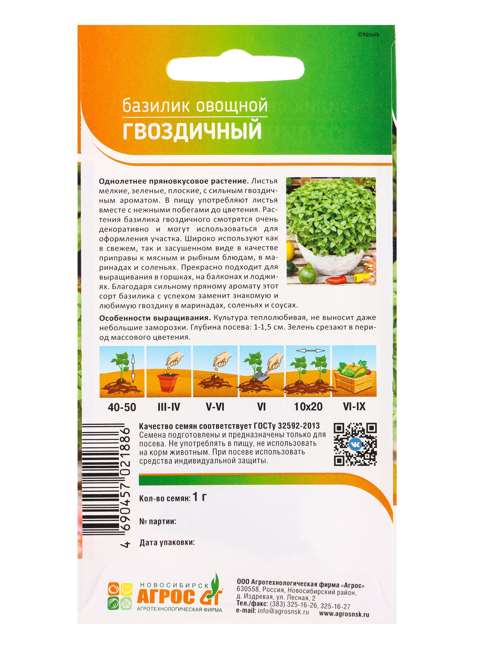 Семена Базилик "Гвоздичный" 1 г, Агросс, Россия