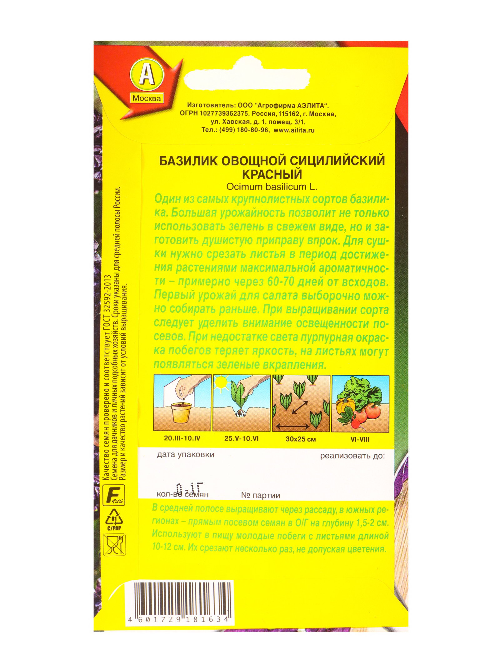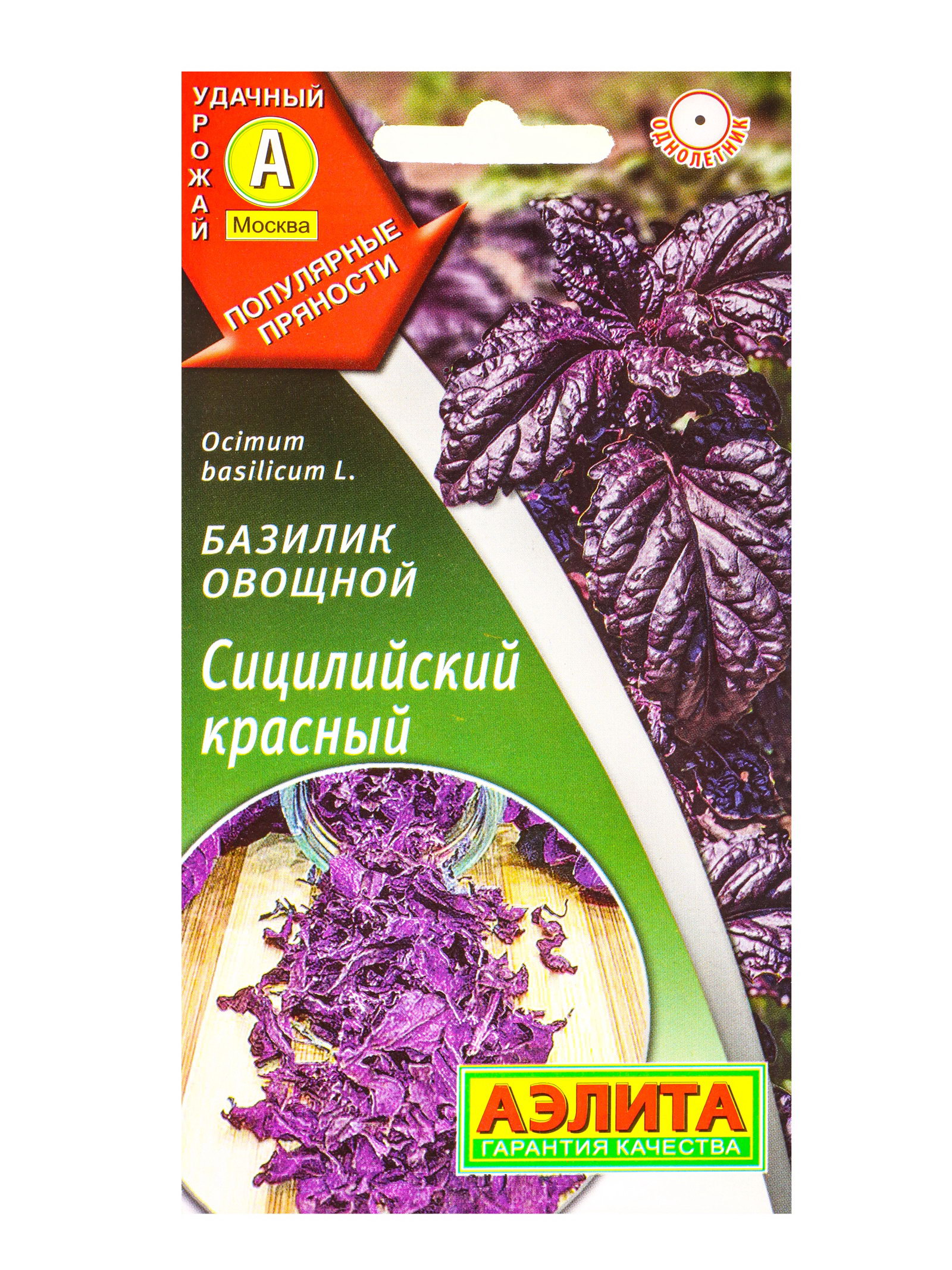 Семена Базилик овощной Сицилийский красный Популярные пряности, Ц/П,0.1 г, Агрофирма АЭЛИТА, Россия