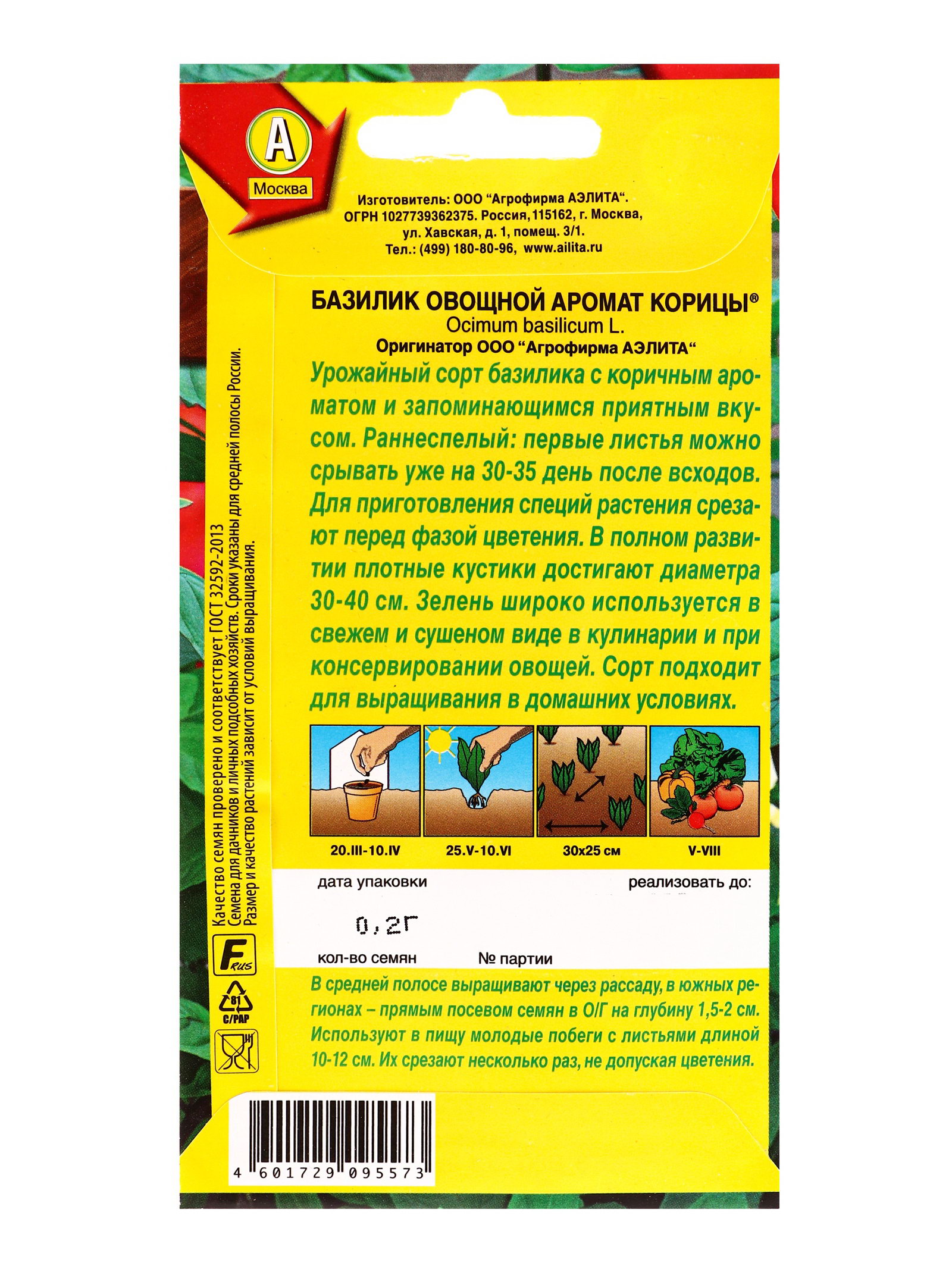 Семена Базилик овощной Аромат корицы, Ц/П,0.2 г, Агрофирма АЭЛИТА, Нидерланды