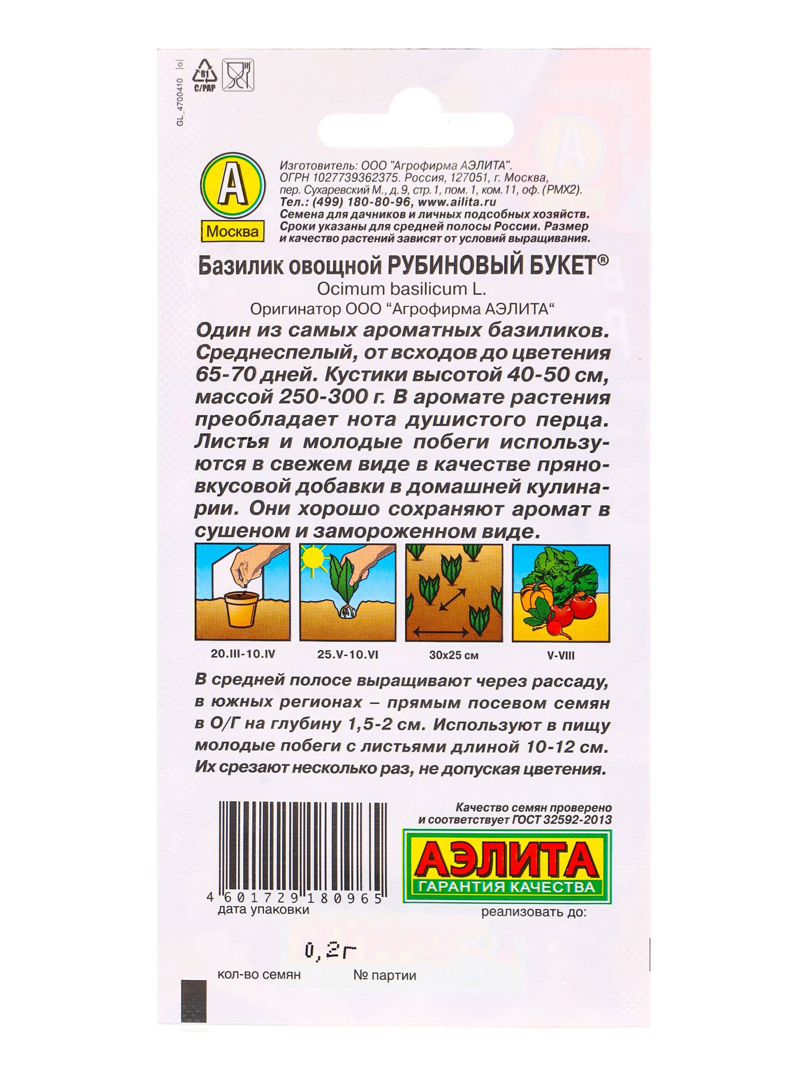 Семена Базилик овощной Рубиновый букет, Ц/П,0.2 г, Агрофирма АЭЛИТА, Нидерланды