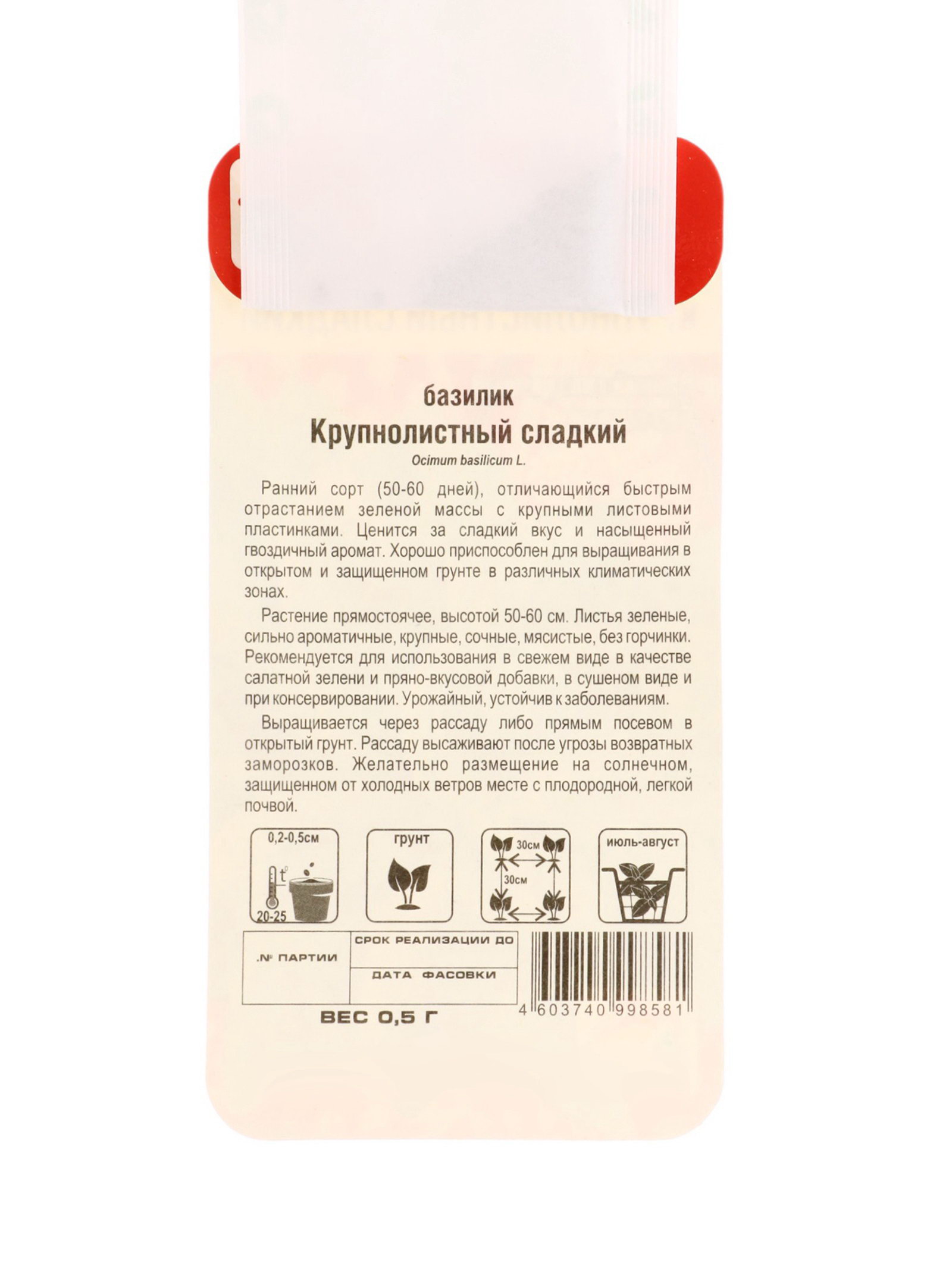 Семена Базилик зелёный "Крупнолистный сладкий", 0.5 г, Сибирский сад, Россия