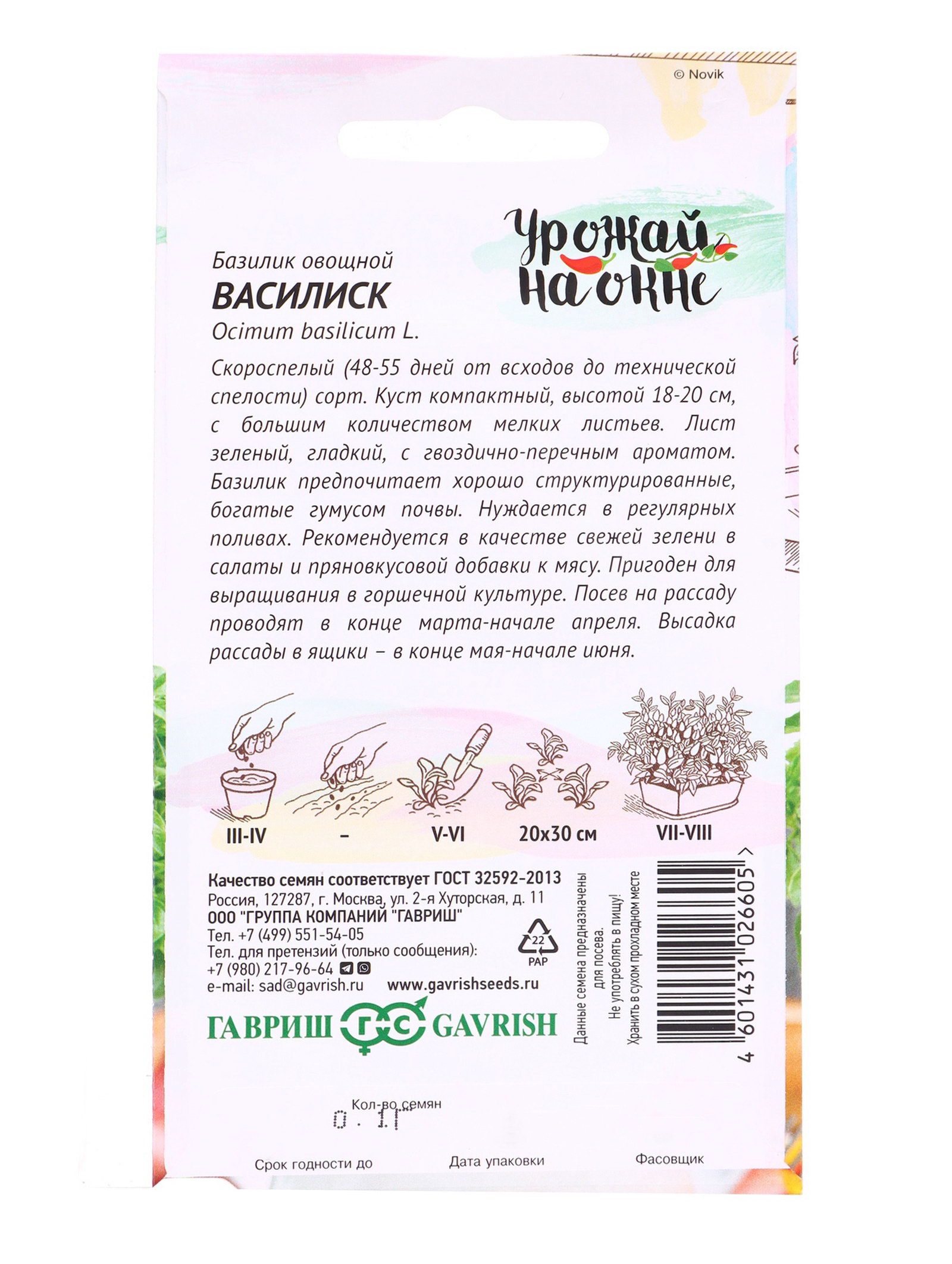 Семена Базилик овощной "Василиск", 0.1 г, Гавриш, Россия
