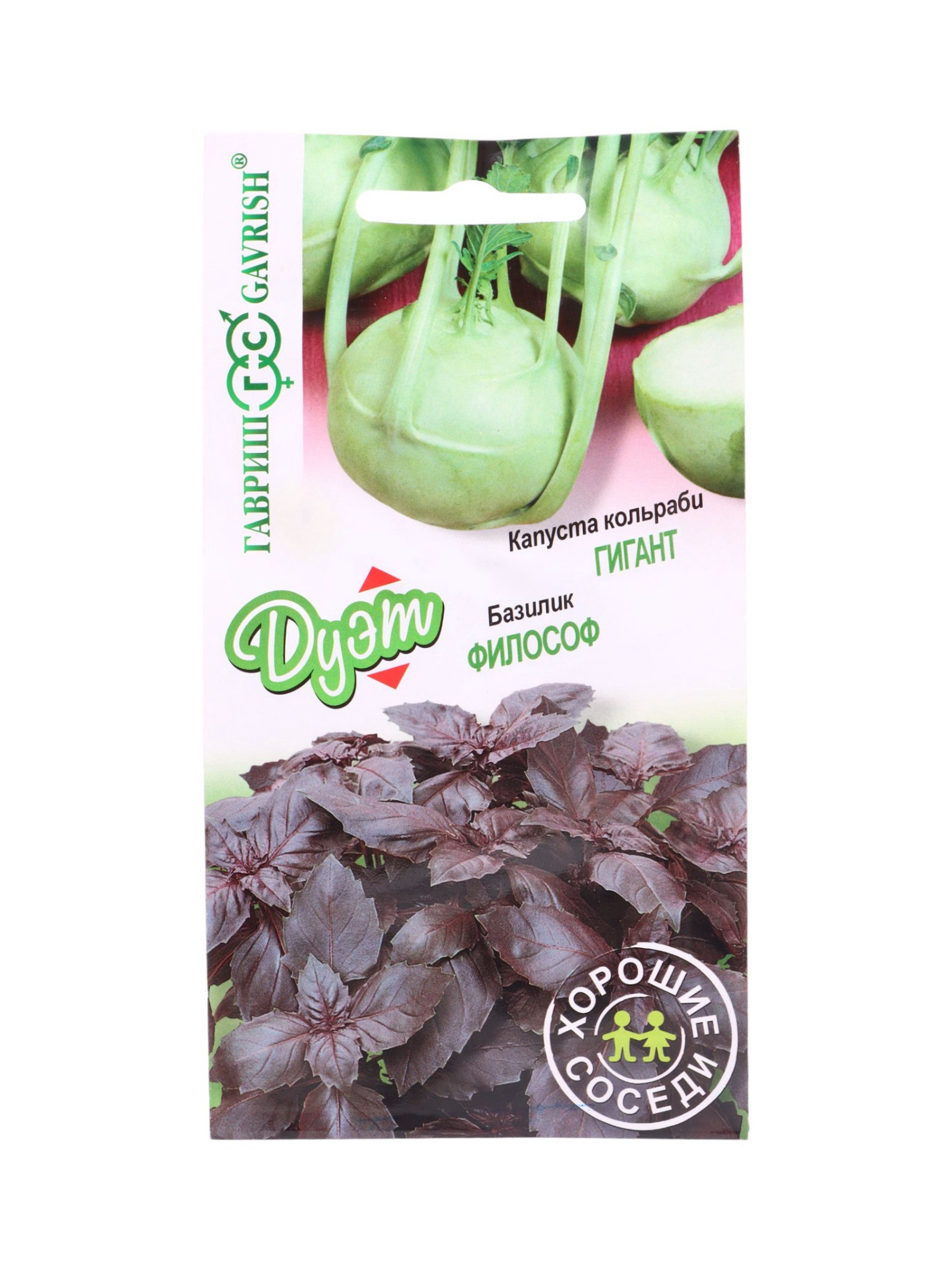 Семена Базилик Философ 0.1 г+Капуста кольраби Гигант 0.2 г серия Дуэт Хорошие соседи, Гавриш, Россия