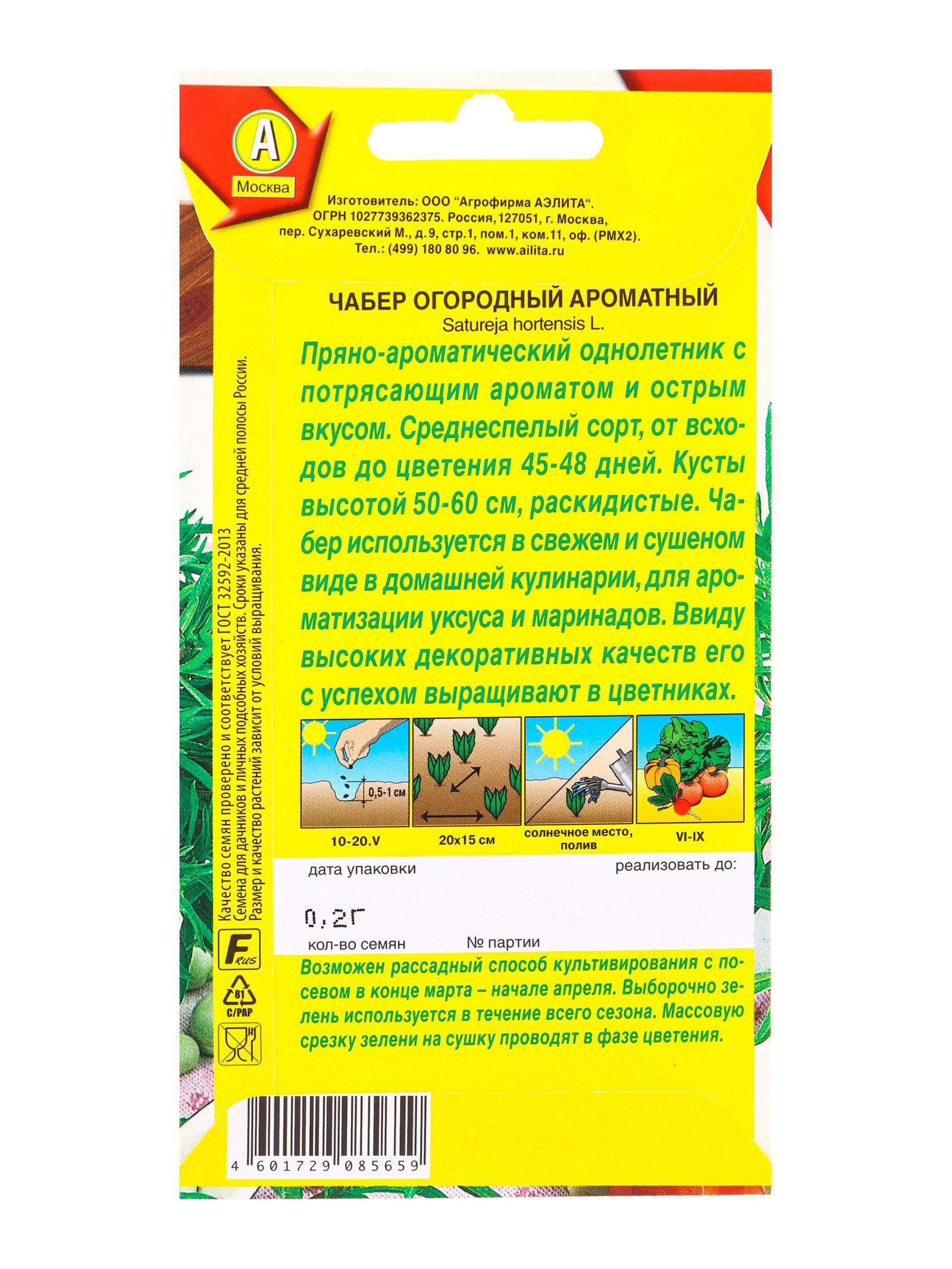 Семена Чабер огорый Ароматный, Ц/П,0.2 г, Агрофирма АЭЛИТА, Польша