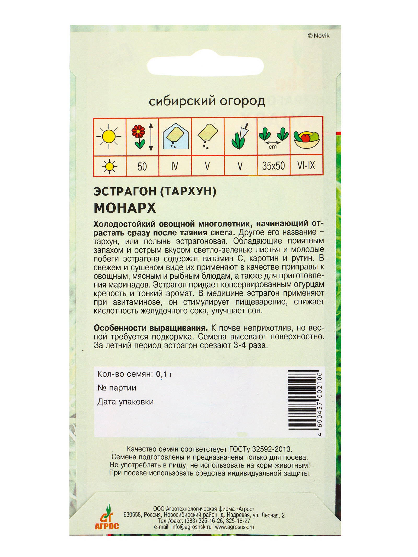 Семена Эстрагон "Монарх" 0.1 г, Агросс, Россия