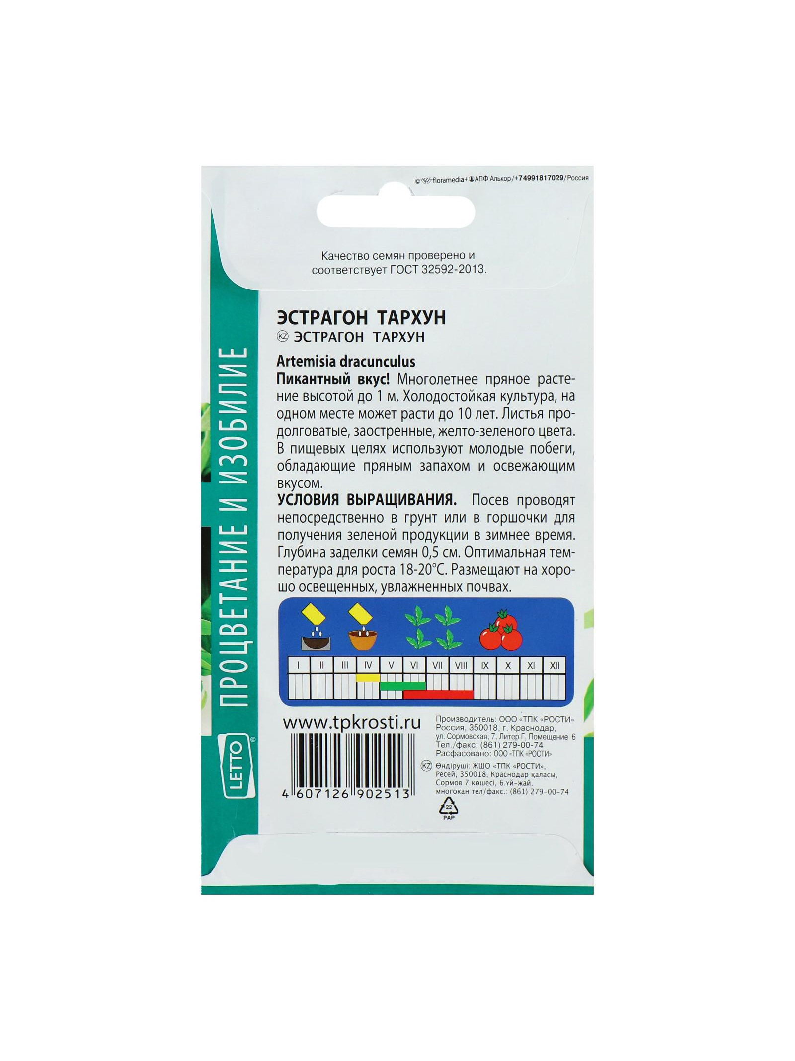 Набор семян Эстрагон Тархун, 5 шт., 9x17x1 см., Мой выбор, Россия