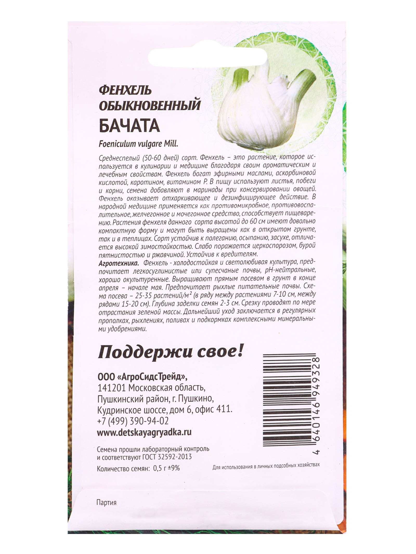 Семена Фенхель обыкновенный Бачата 0.5 г, Агросидстрейд, Россия
