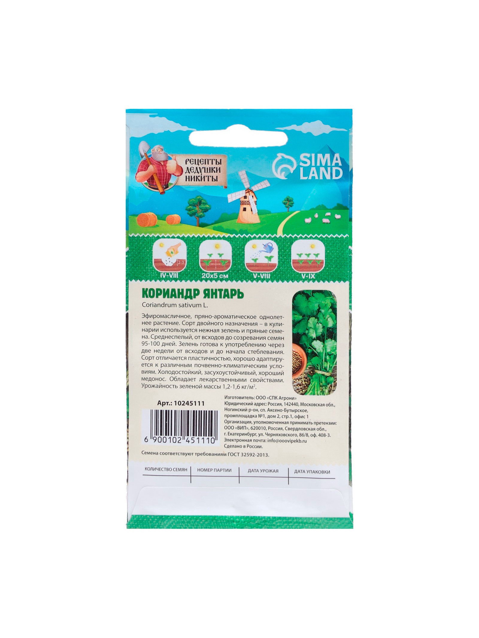 Семена Кориандр "Янтарь", 5 г, Рецепты дедушки Никиты, Россия