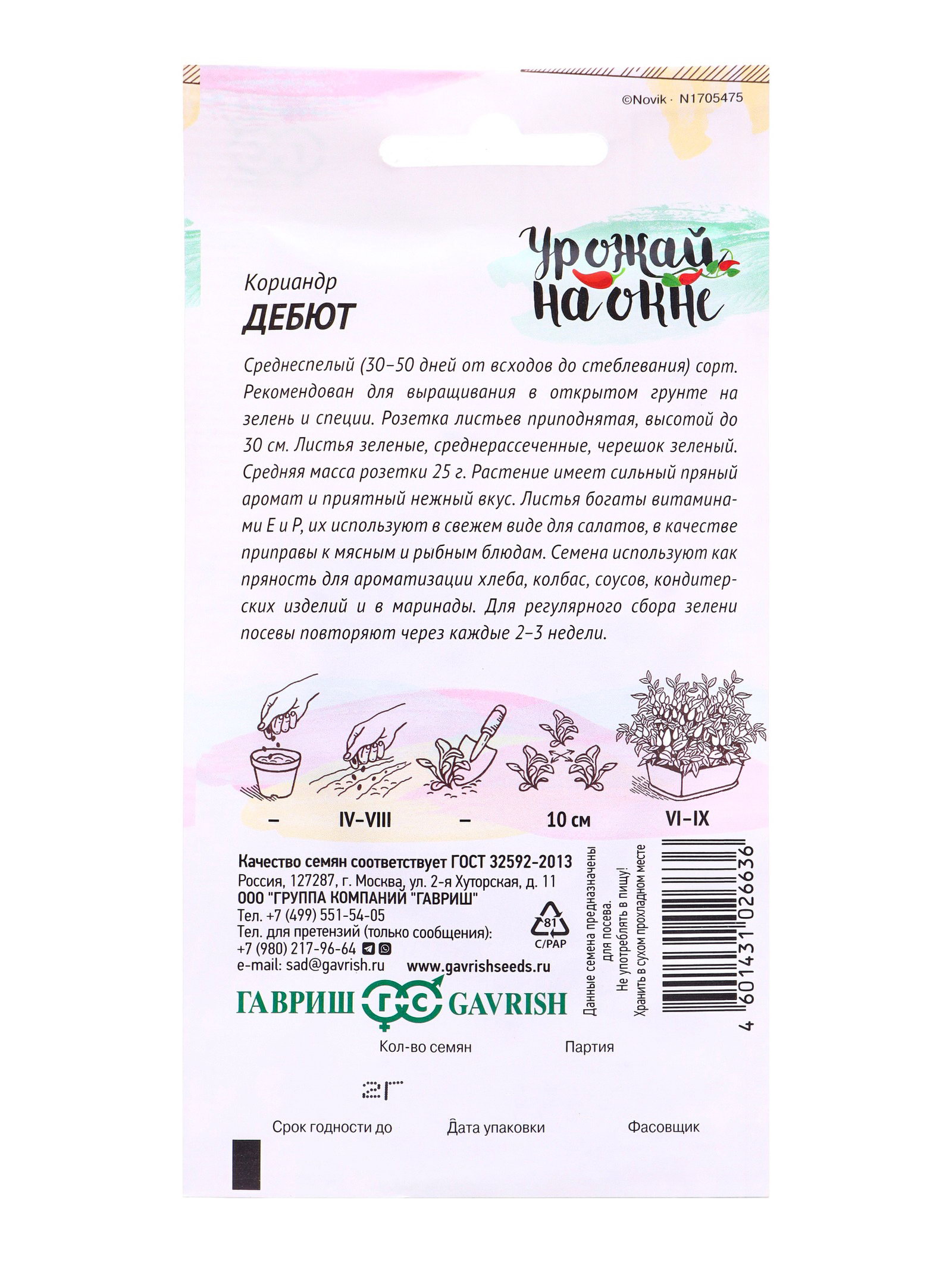 Семена Кориандр "Дебют", 2 г, Гавриш, Россия
