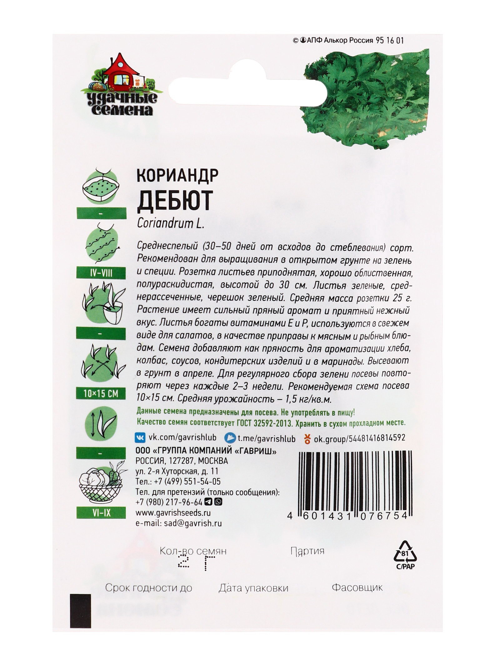 Семена Кориандр "Дебют", 2 г, "Удачные семена", Гавриш, Россия