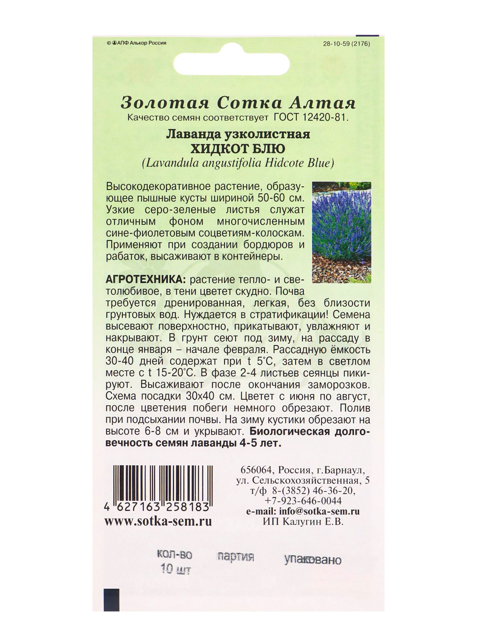 Семена Лаванда "Хидкот Блю", 10 шт., Золотая Сотка Алтая, Россия