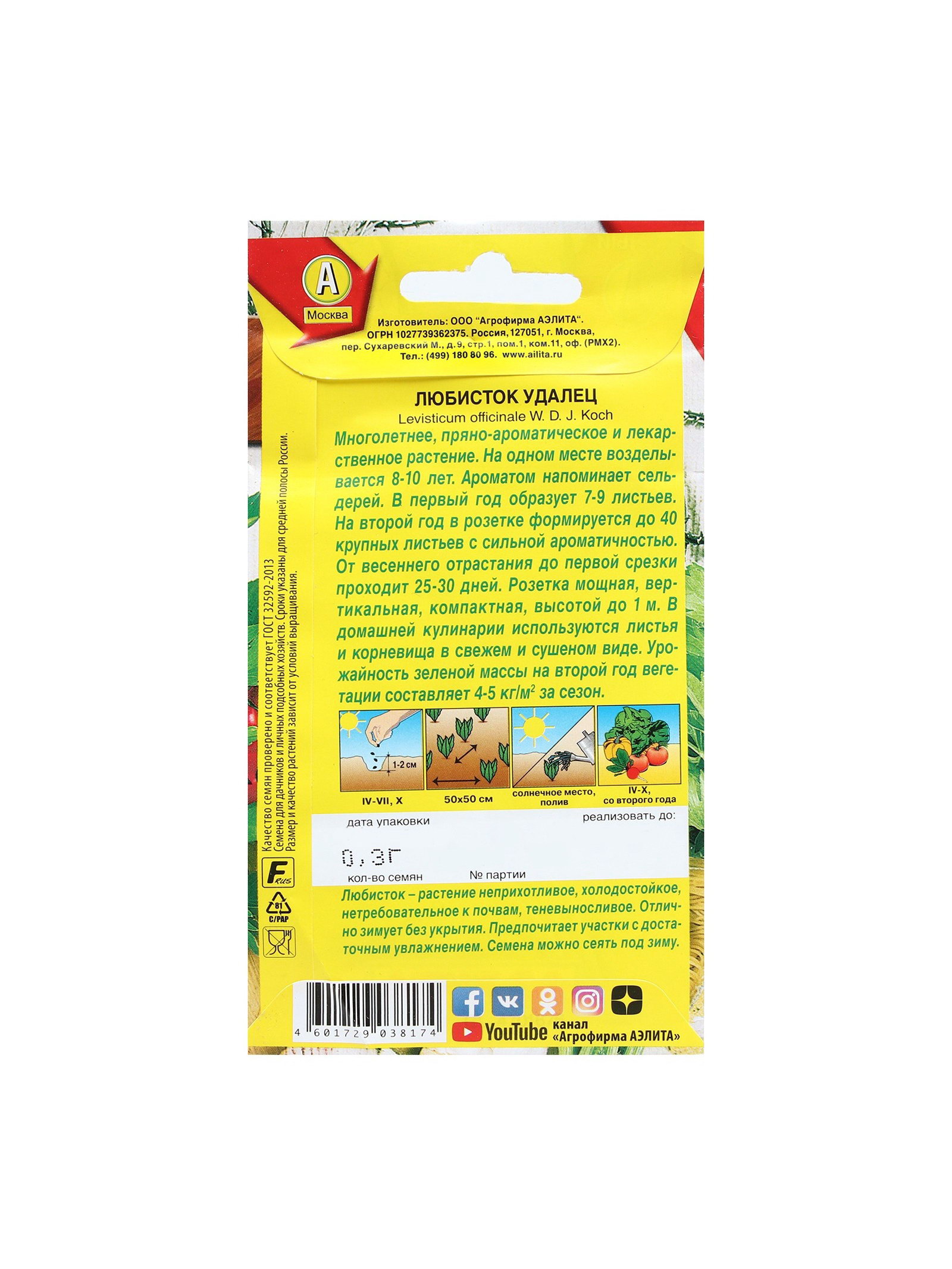 Набор семян Любисток "Удалец", пряность, 5 шт., 9x17x1 см., Мой выбор, Россия