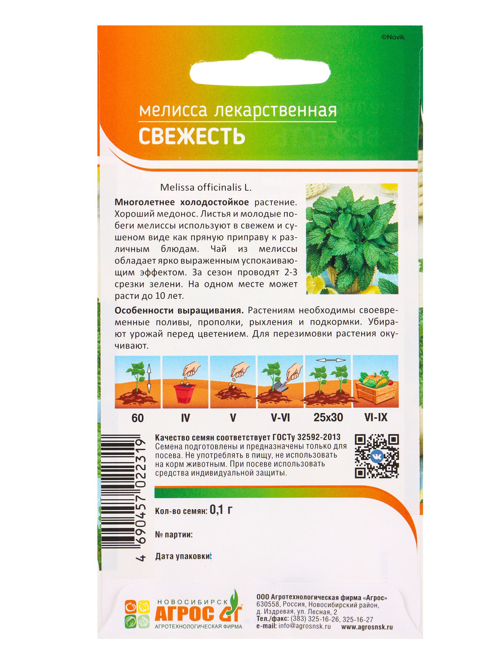 Семена Мелисса "Свежесть" 0.1 г, Агросс, Россия