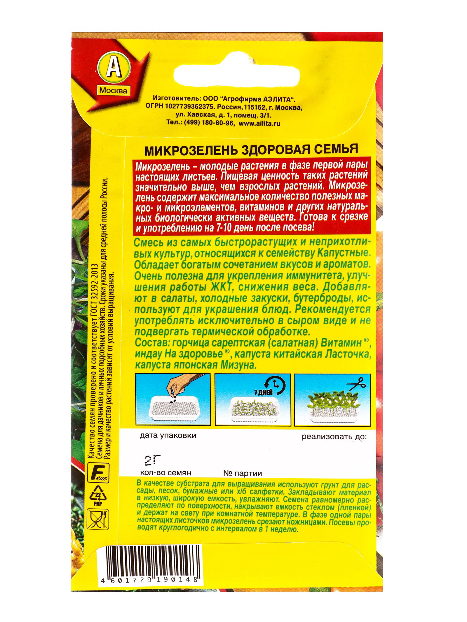 Семена Микрозелень Здоровая семья, Ц/П,2 г, Агрофирма АЭЛИТА, Россия
