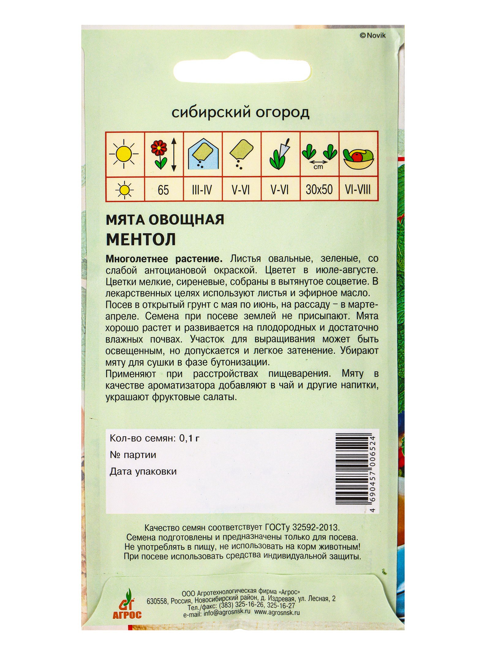 Семена Мята "Ментол" 0.1 г, Агросс, Россия