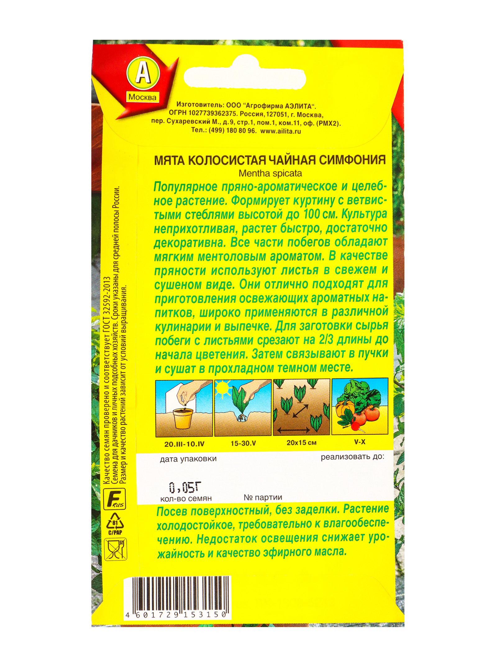 Семена Мята колосистая Чайная симфония, Ц/П,0.05 г, Агрофирма АЭЛИТА, Россия