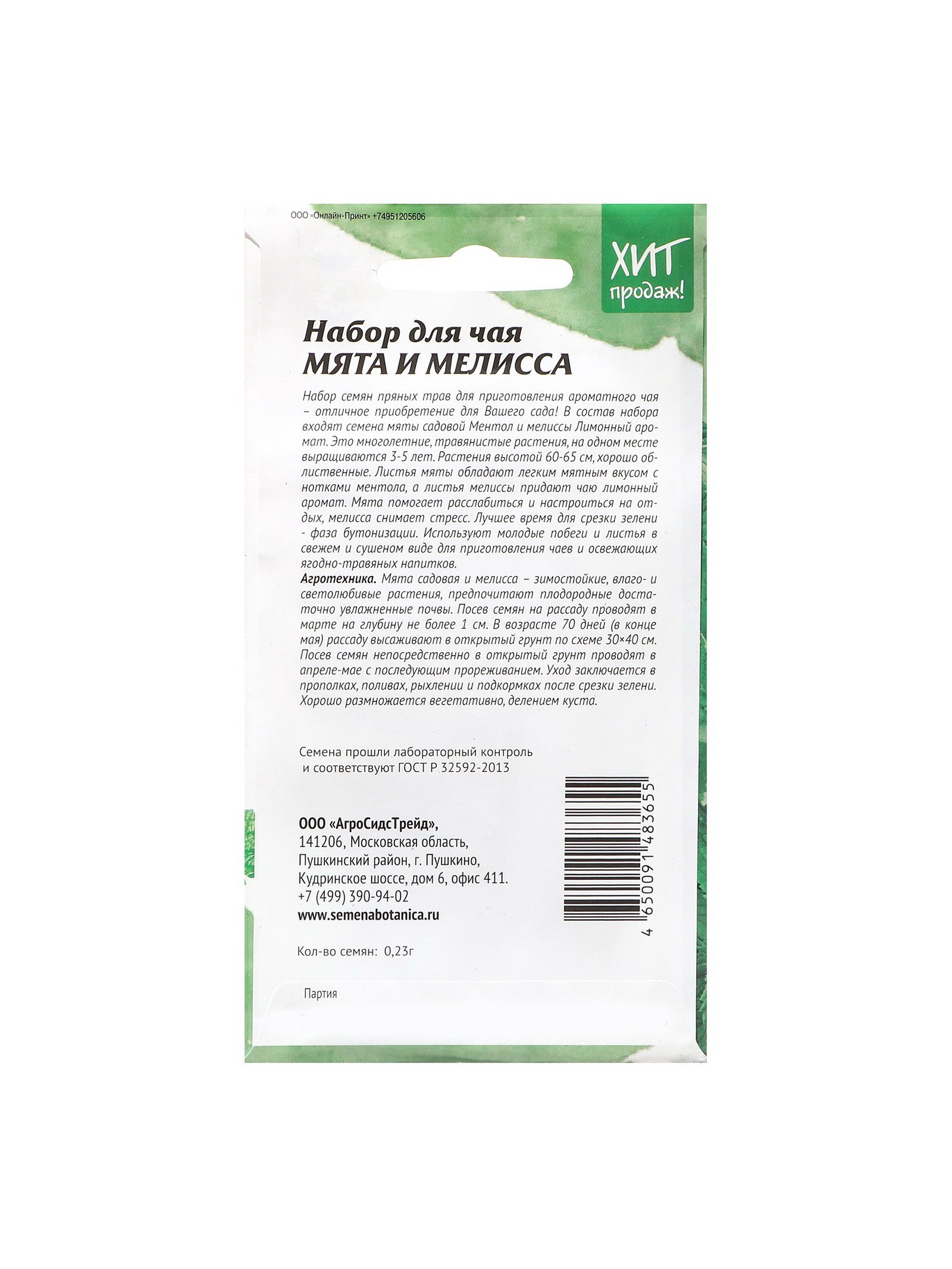 Набор семян Мята и мелисса "Набор для чая", 5 шт., 9x17x1 см., Мой выбор, Россия