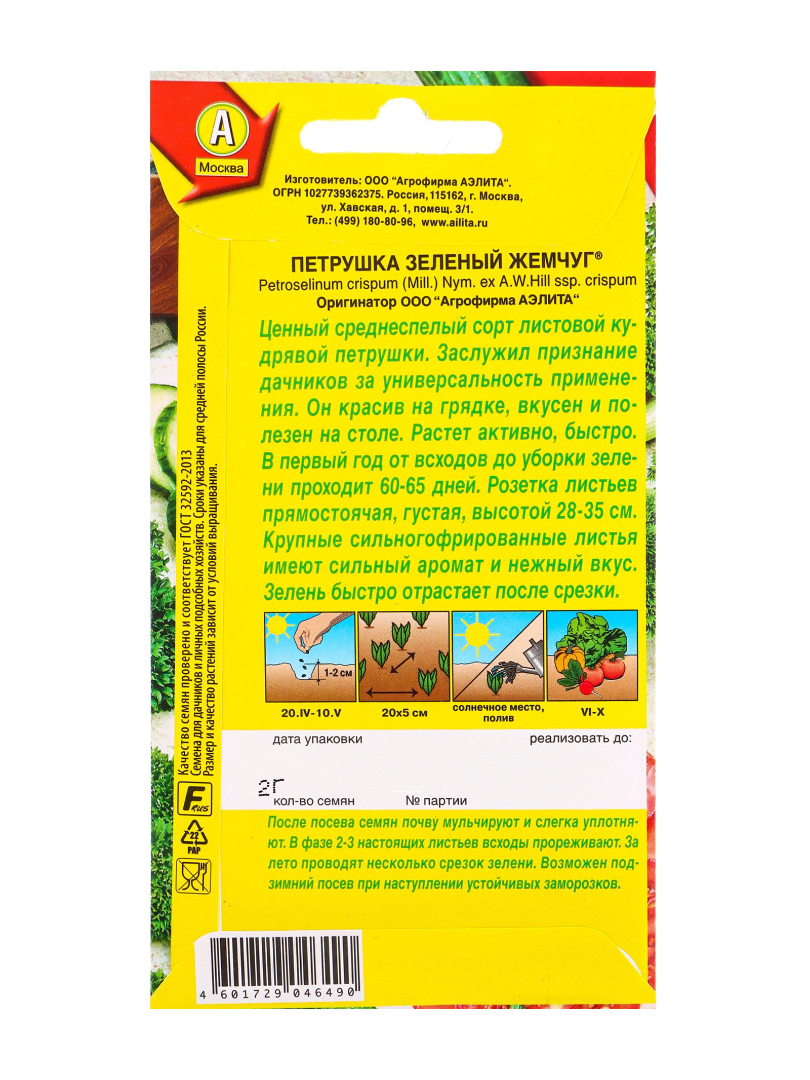 Семена Петрушка кудрявая Зеленый жемчуг, Ц/П,2 г, Агрофирма АЭЛИТА, Франция