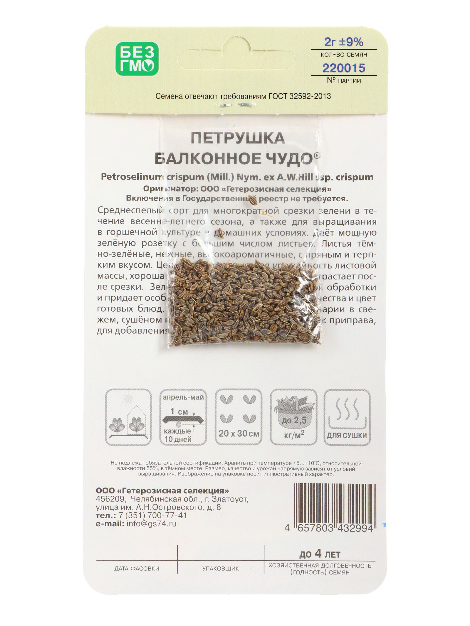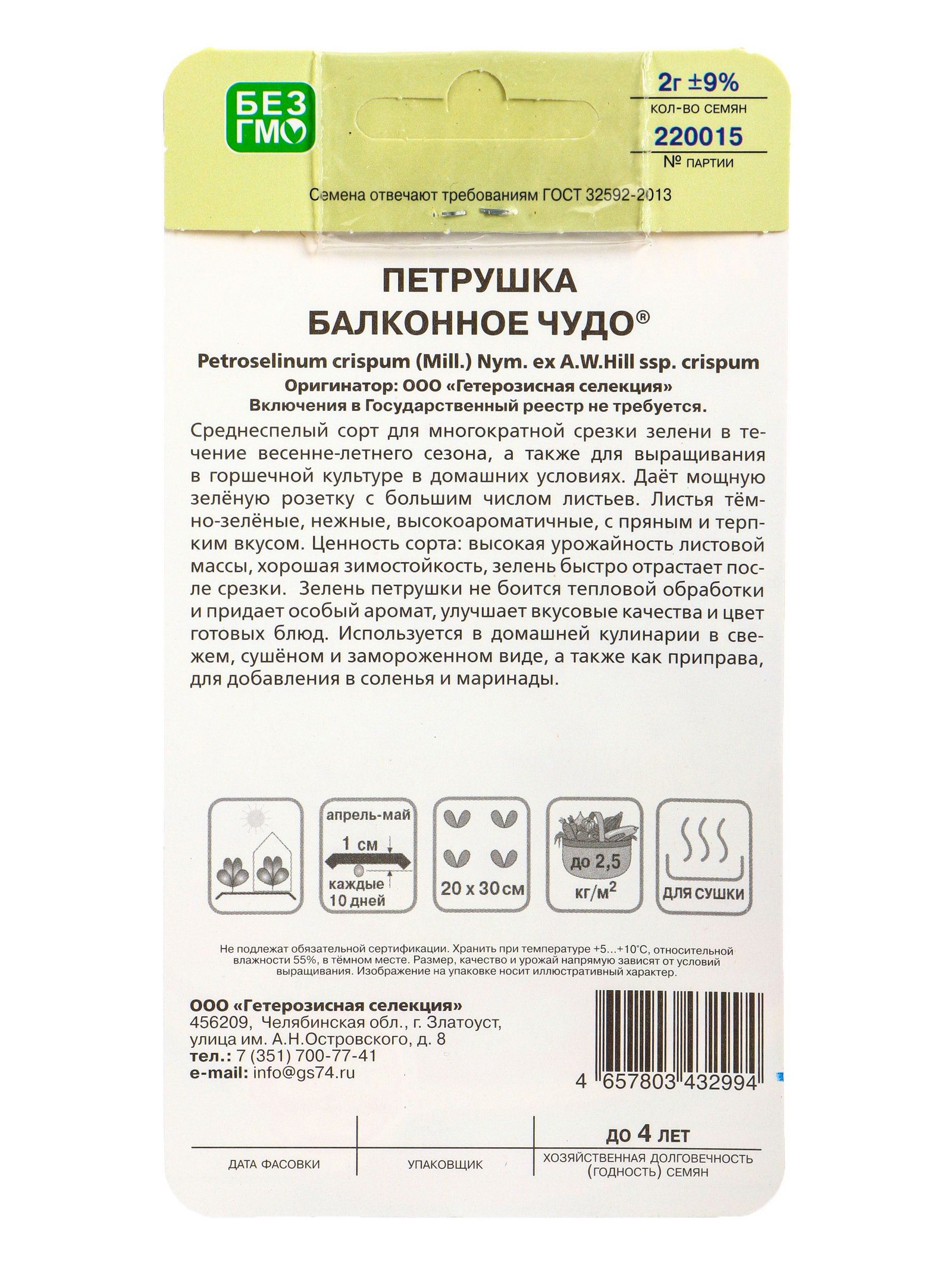 Семена Петрушка Балконное чудо, Уральский Дачник, Россия