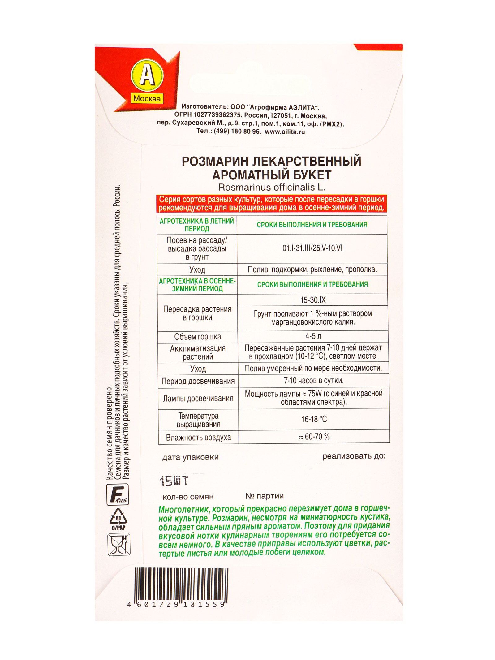 Семена Розмарин Ароматный букет Лето продолжается., Ц/П,15 шт., Агрофирма АЭЛИТА, Россия