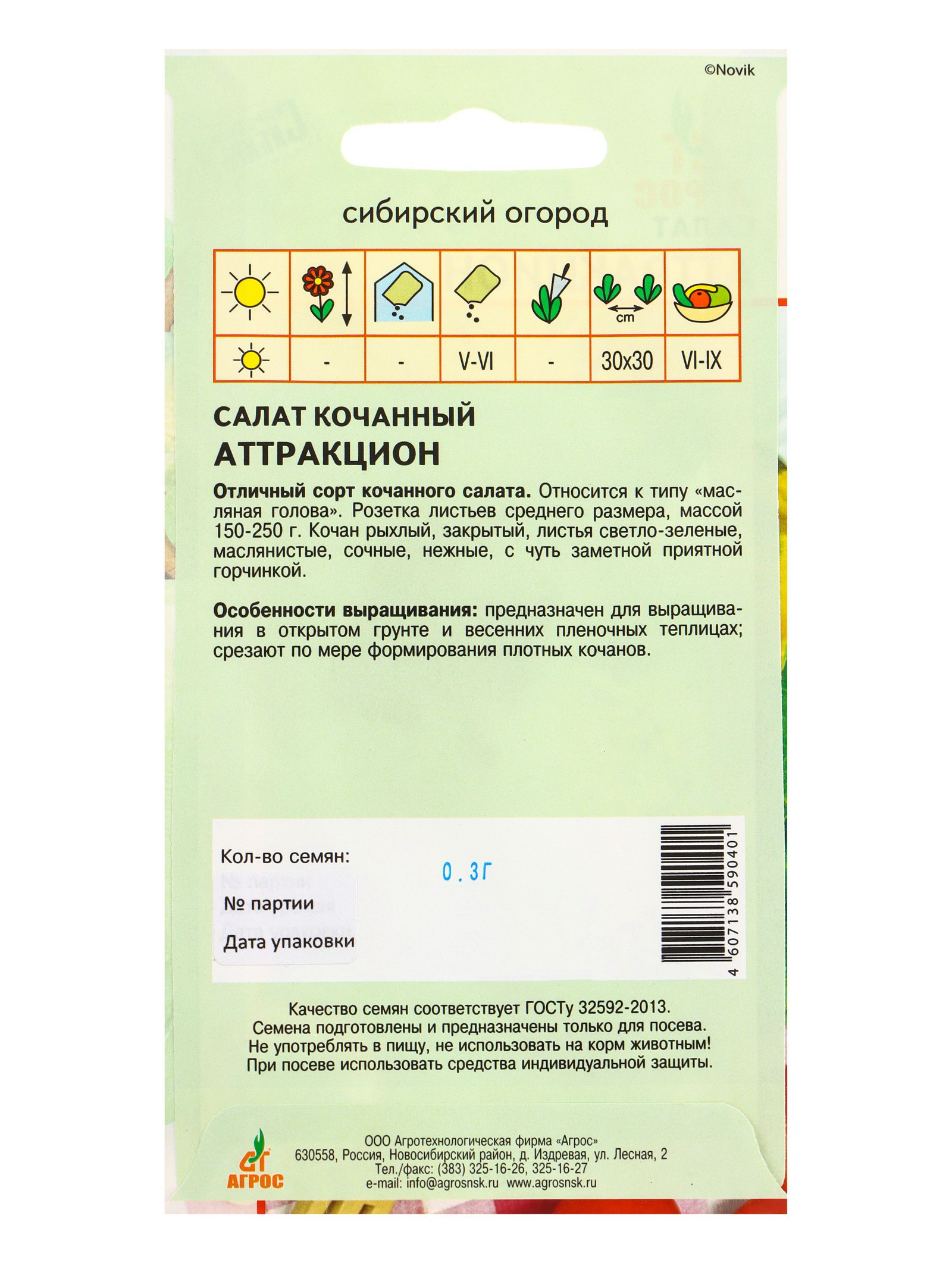 Семена Салат "Аттракцион" 0.3 г, Агросс, Россия