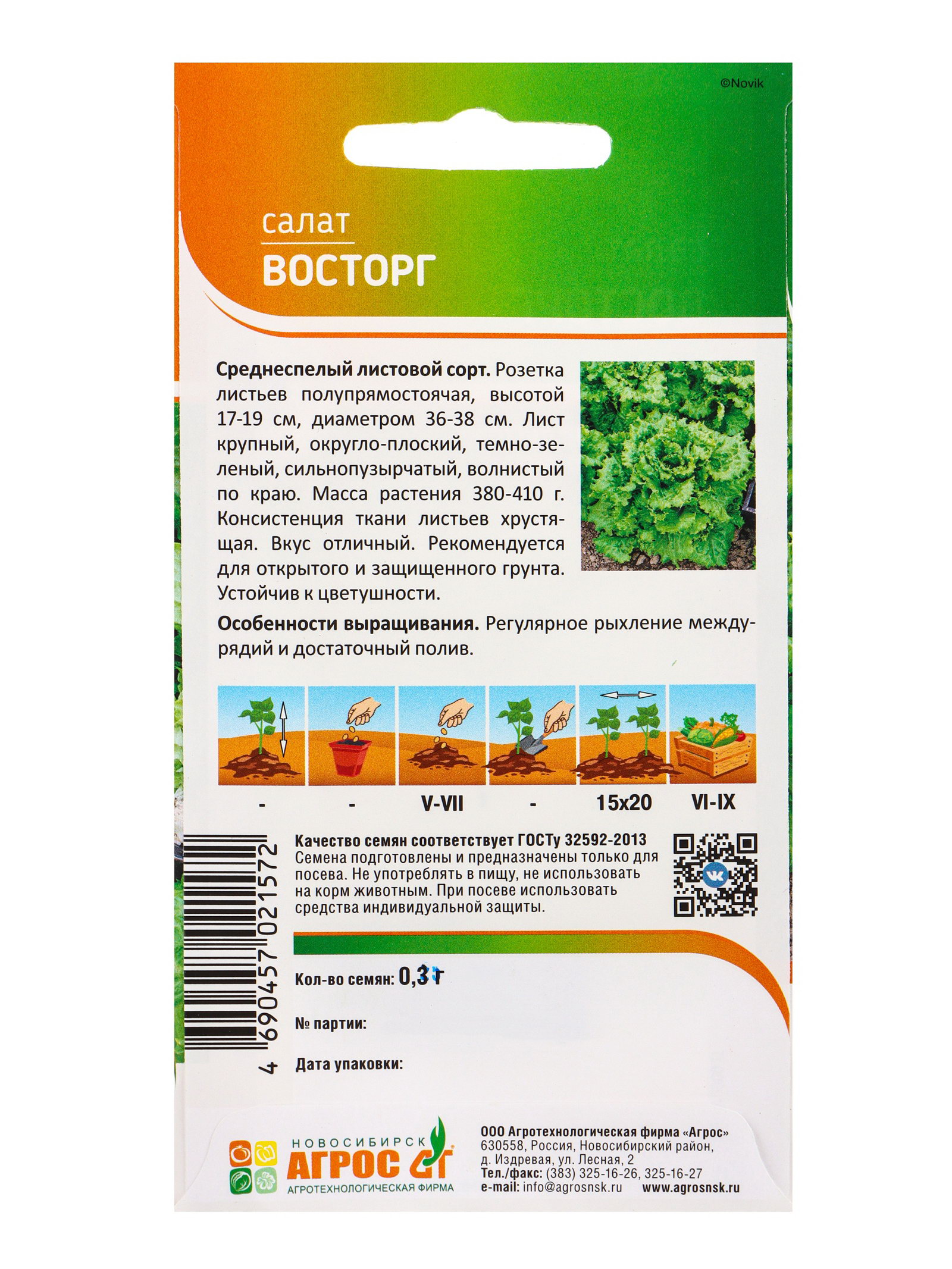 Семена Салат "Восторг" 0.3 г, Агросс, Россия