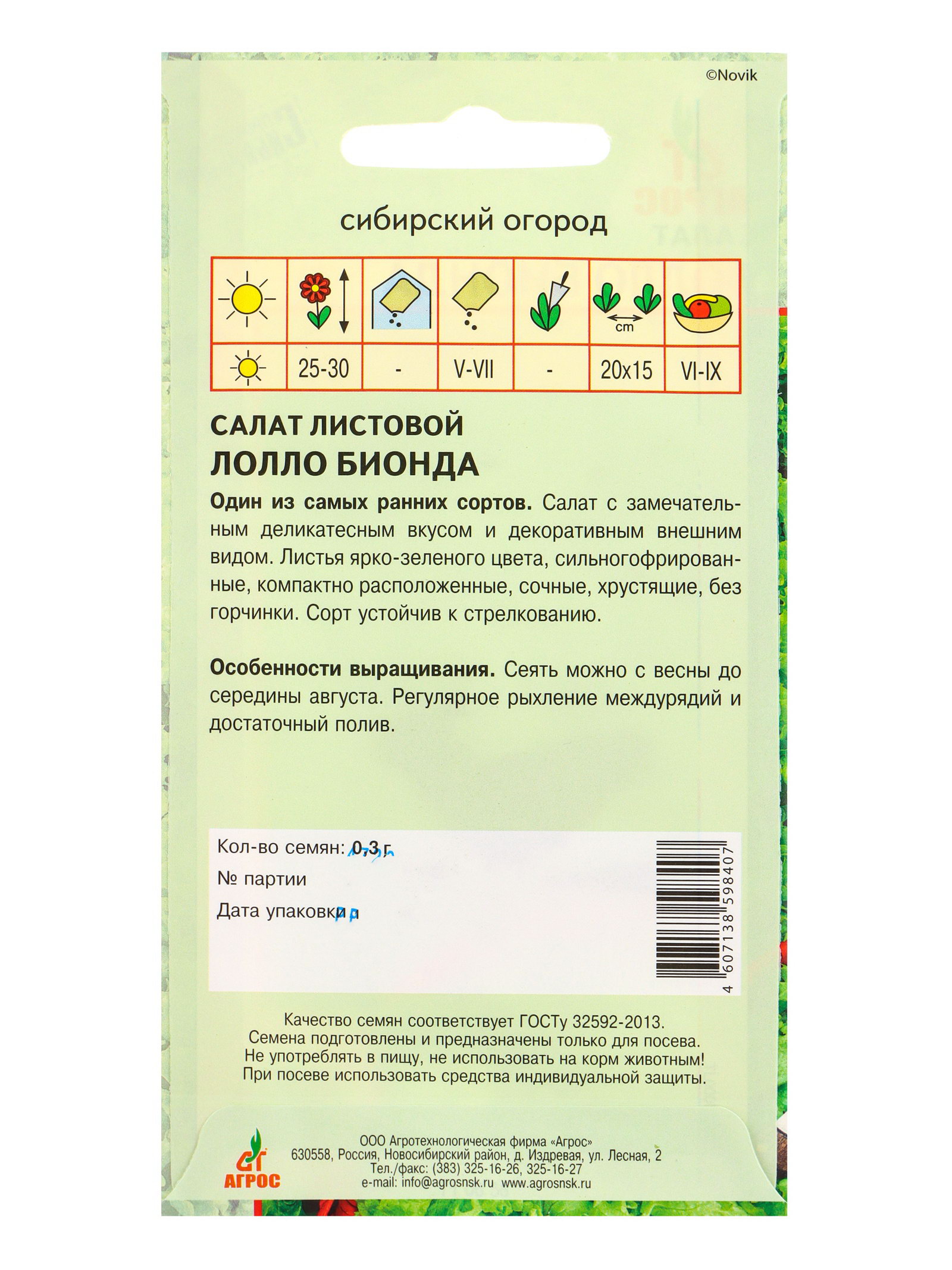 Семена Салат "Лолло Бионда" 0.3 г, Агросс, Россия