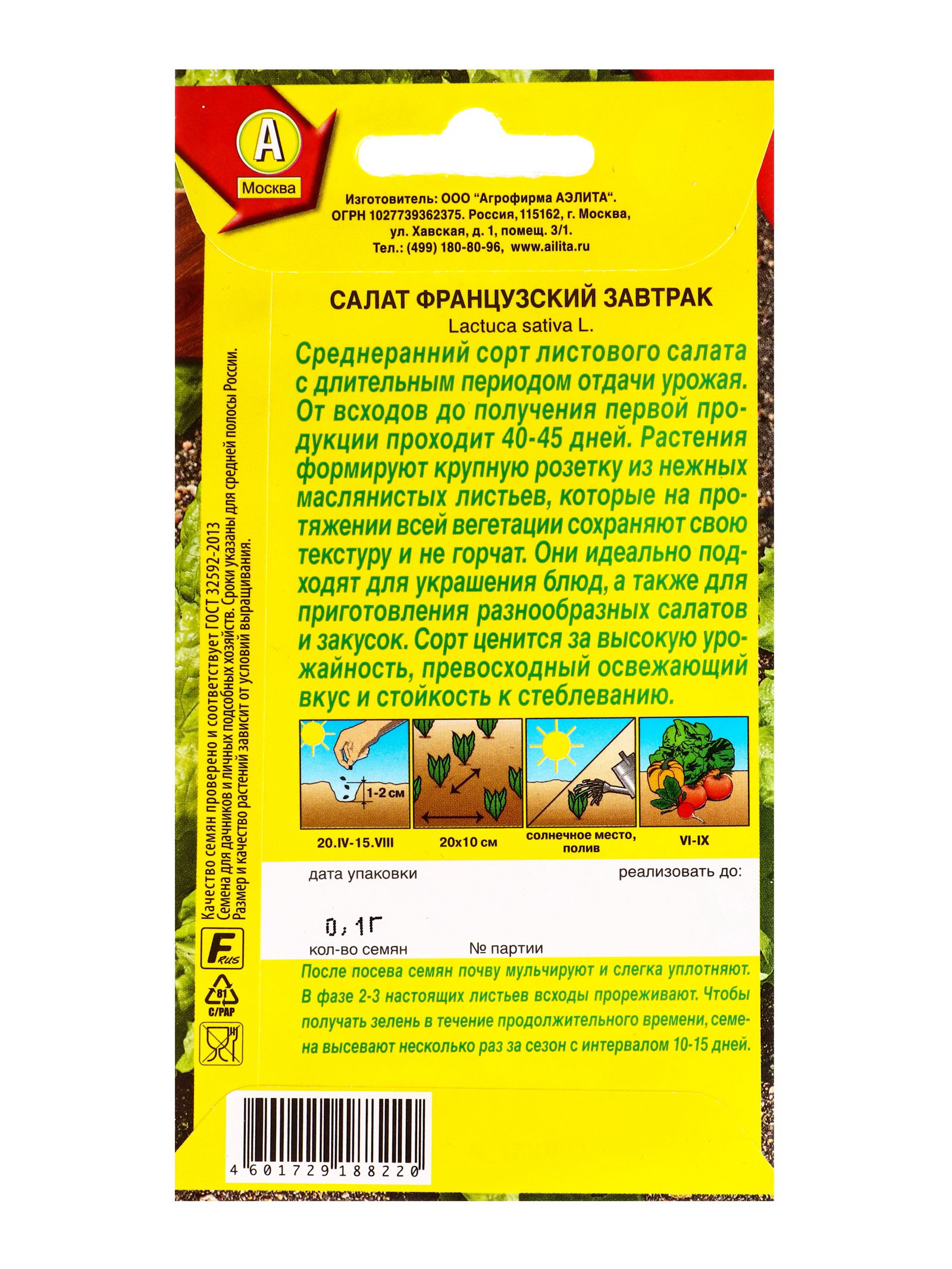 Семена Салат Французский завтрак, Ц/П,0.1 г, Агрофирма АЭЛИТА, Россия