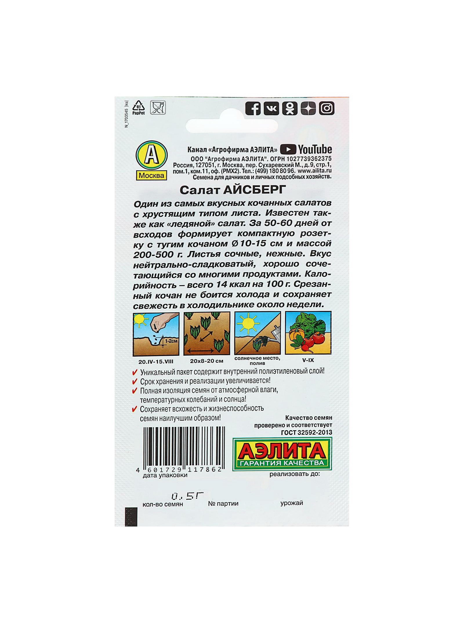 Набор семян Салат Айсберг кочанный, 5 шт., 9x17x1 см., Мой выбор, Россия
