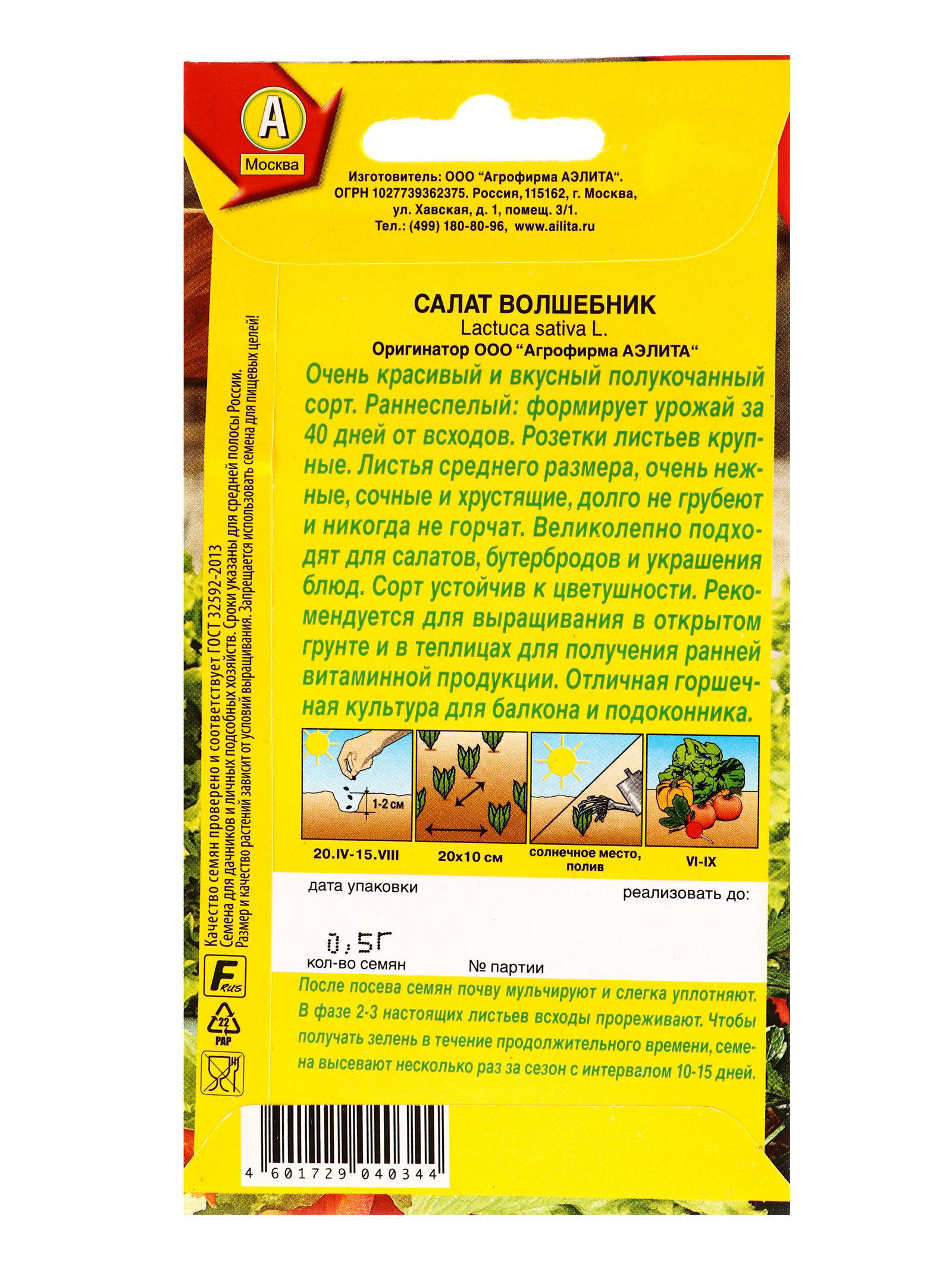 Семена Салат "Волшебник", полукочанный 0.5 г, Агрофирма АЭЛИТА, Италия