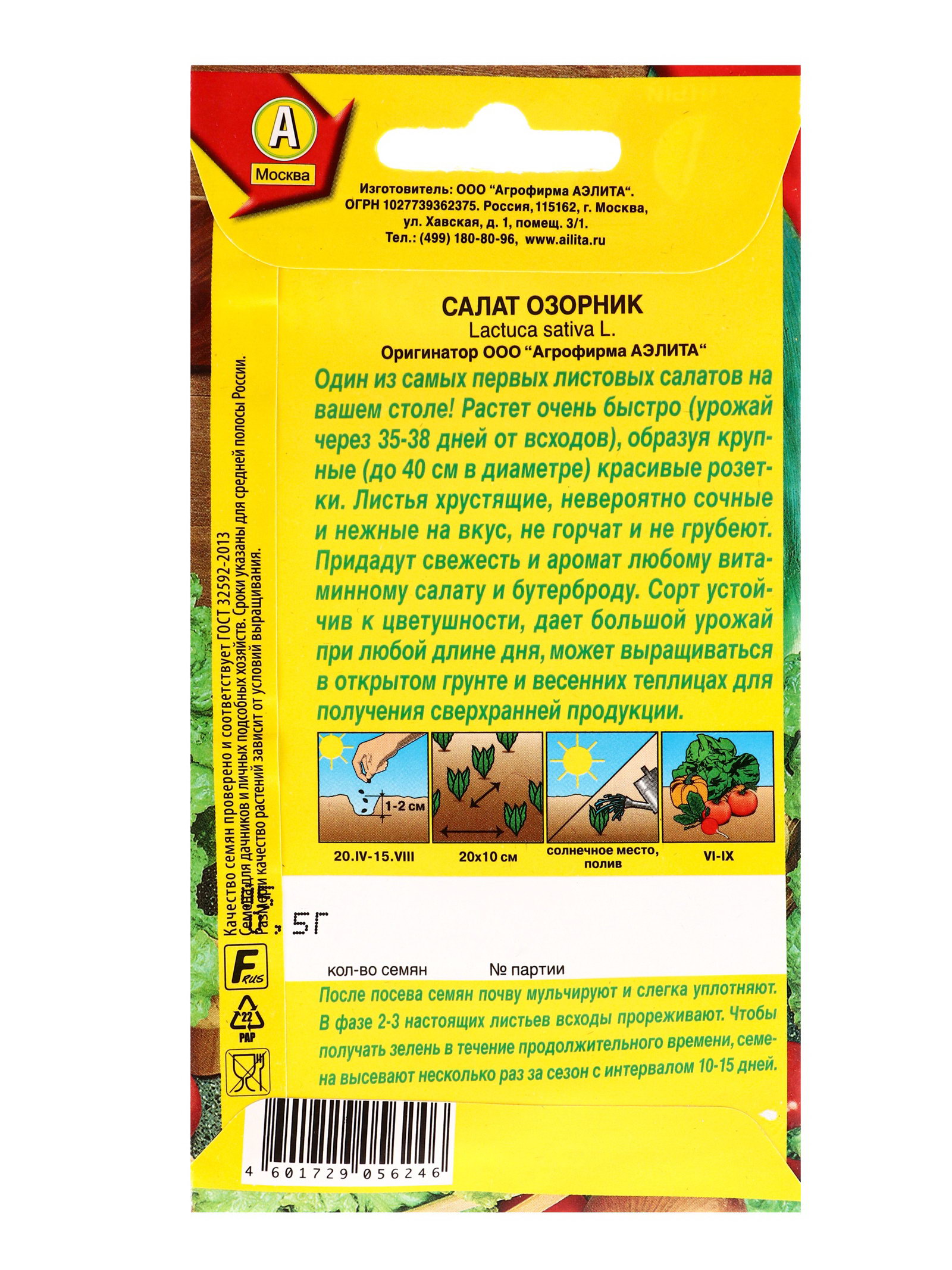 Семена Салат "Озорник", листовой, 0.5 г, Агрофирма АЭЛИТА, Россия